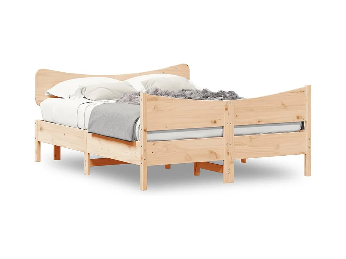 Lit double + tête de lit 150x200 cm bois de pin massif FR37335