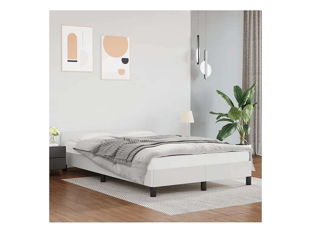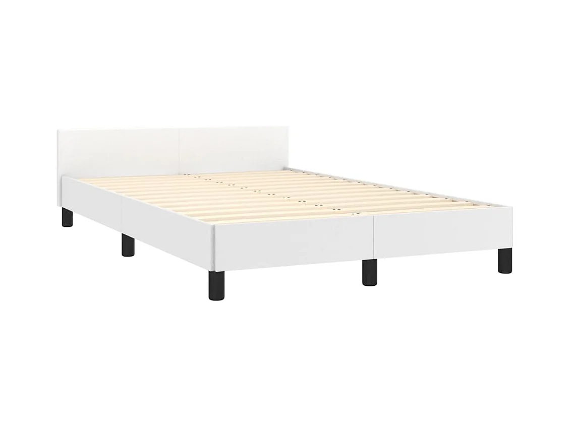 Lit double + tête de lit blanc 120x190 cm similicuir FR46356