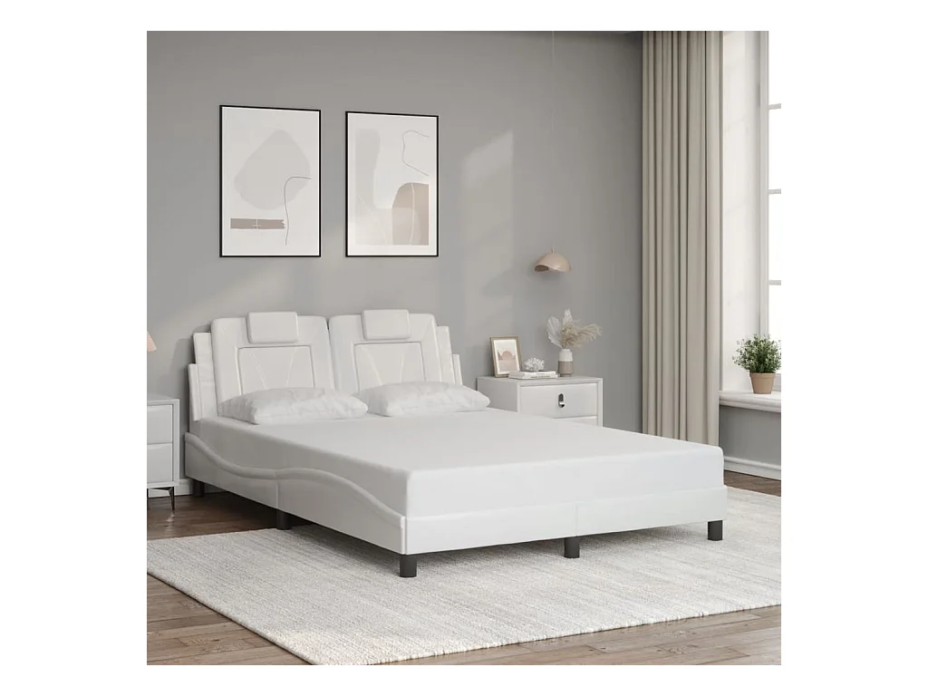 Lit double + tête de lit Blanc 140x190 cm Similicuir FR81119