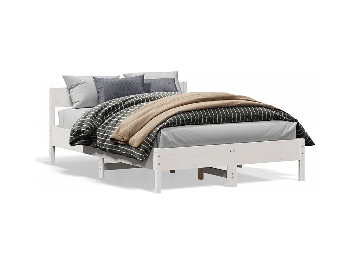 Lit double + tête de lit blanc 150x200 cm bois pin massif FR20270