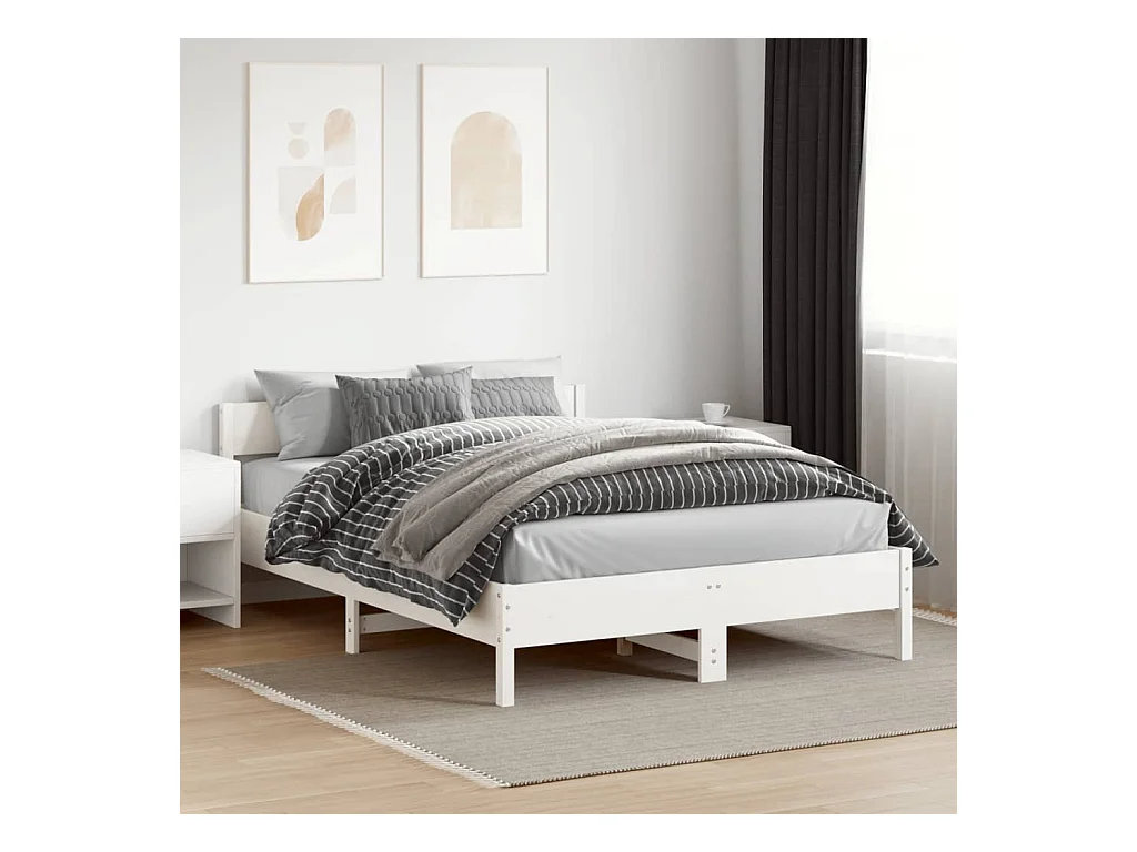 Lit double blanc 150x200 cm bois de pin massif FR68708