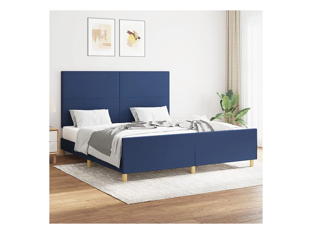 Lit double + tête de lit Bleu 160x200 cm Tissu FR92534