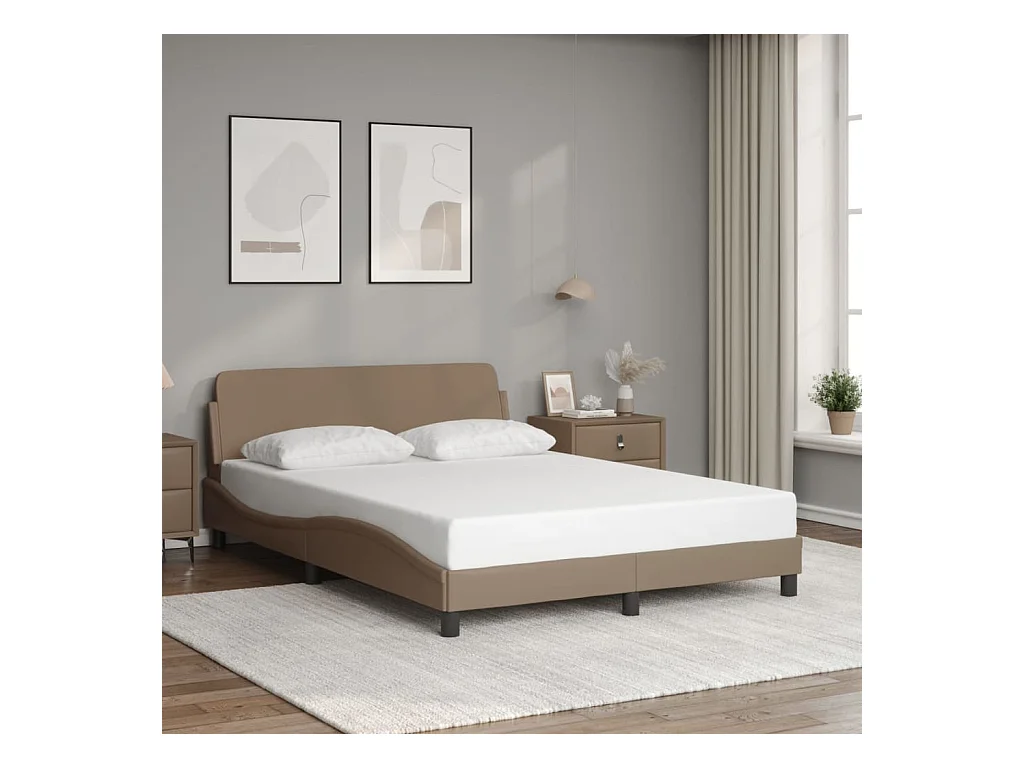 Lit double + tête de lit Cappuccino 140x200 cm Similicuir FR40224