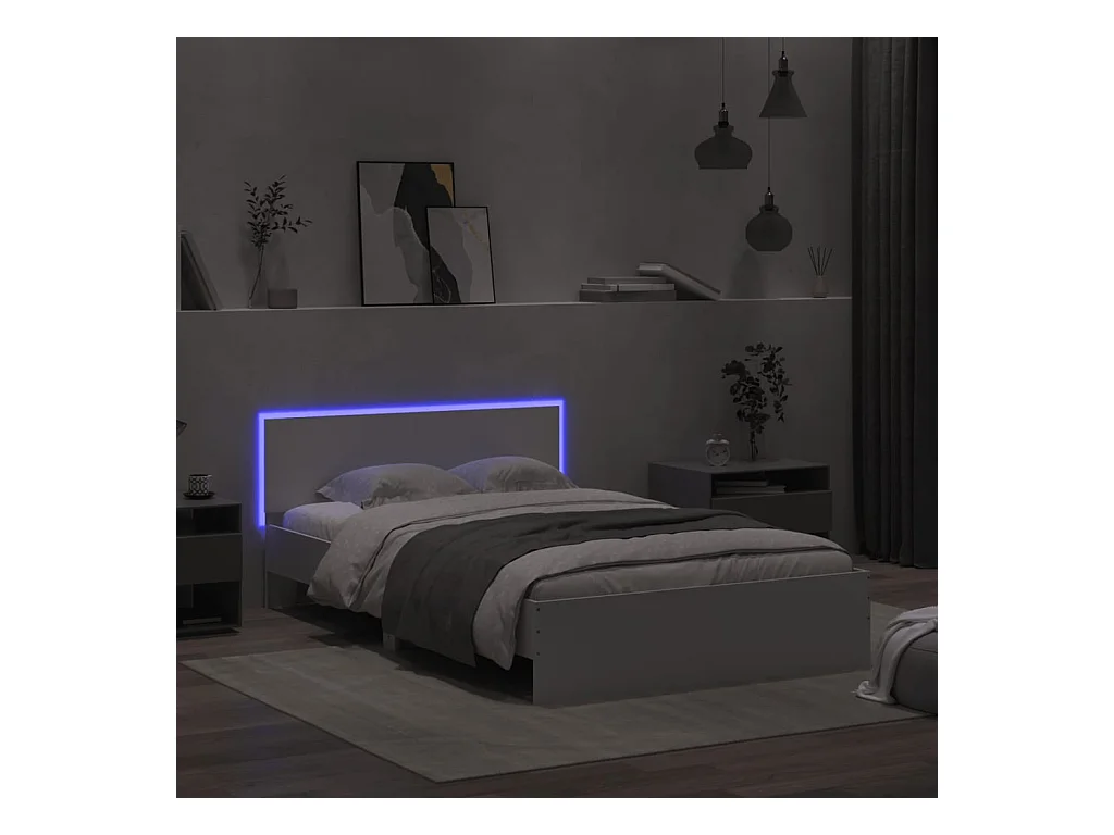 Lit double + tête de lit et LED blanc 135x190 cm FR69060