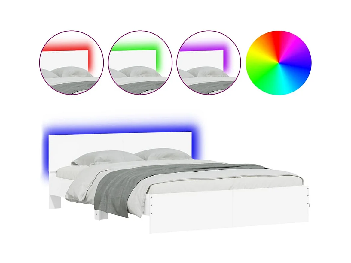 Lit double + tête de lit et lumières LED blanc 150x200 cm FR25071