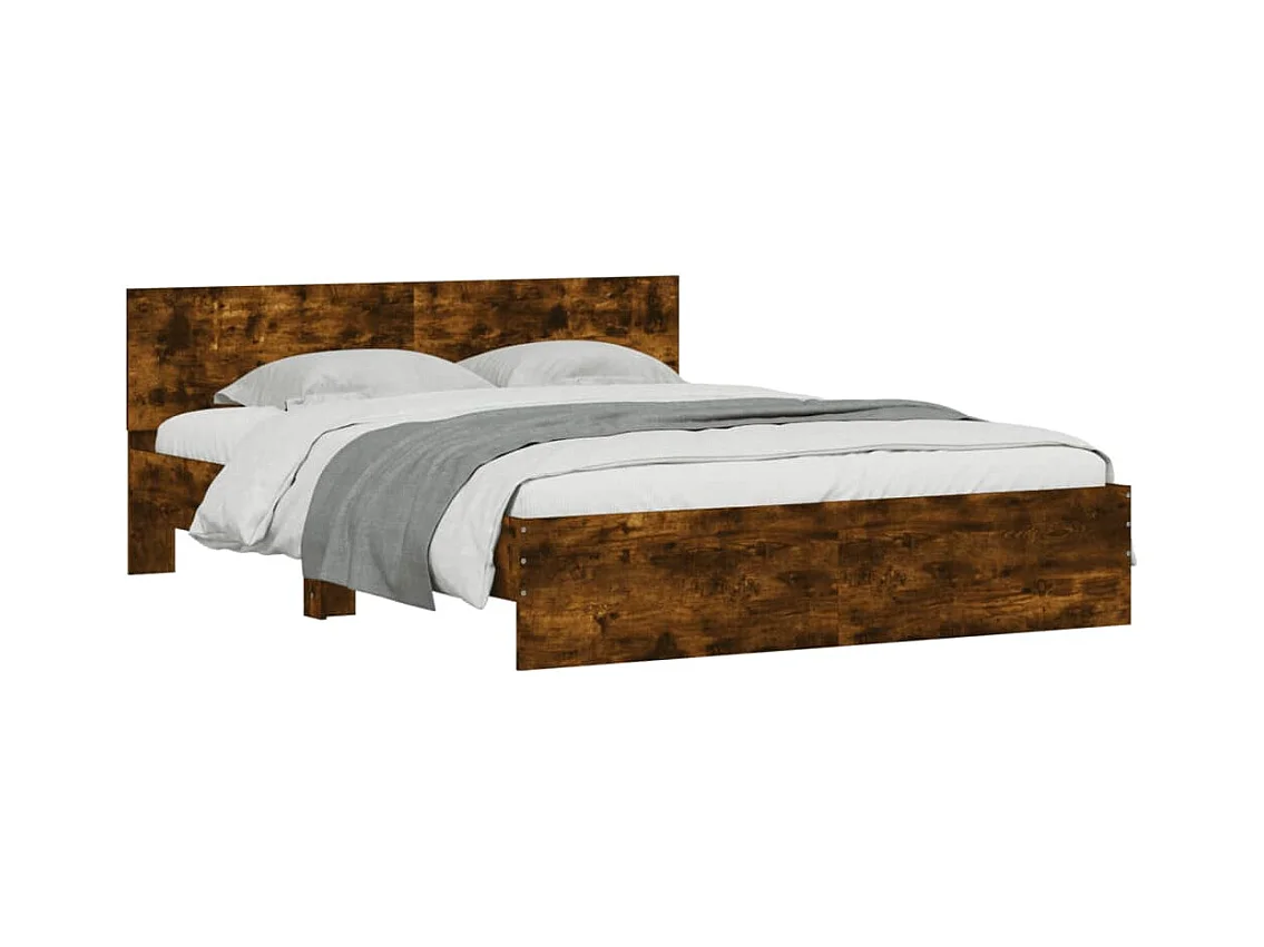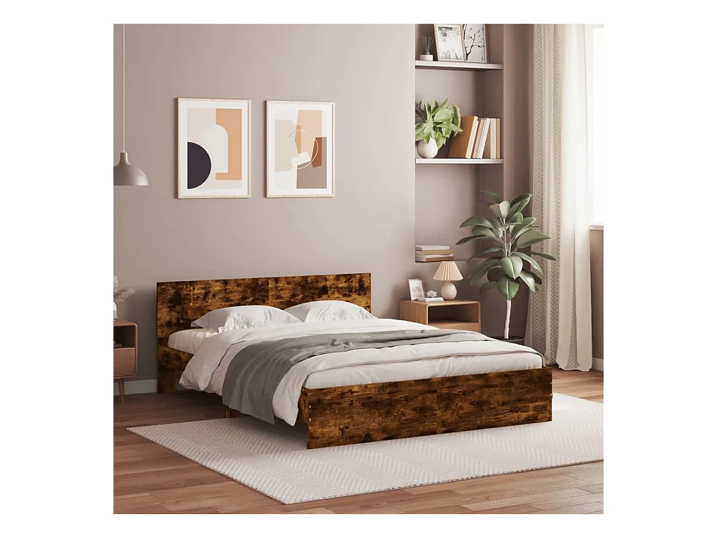 Lit double chêne fumé 160x200 cm bois d'ingénierie et métal FR16206