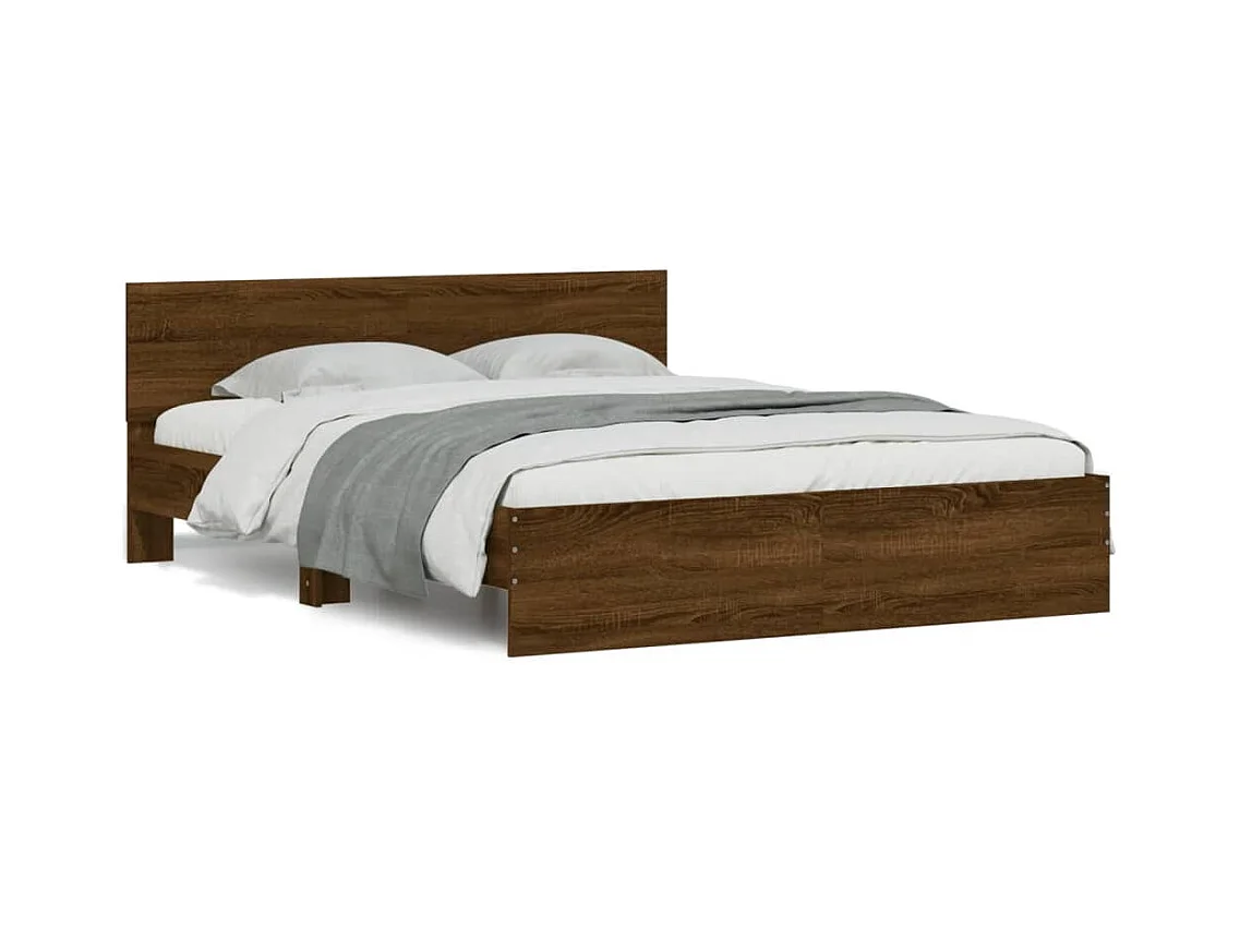 Lit double + tête de lit et LED chêne marron 160x200 cm FR62739
