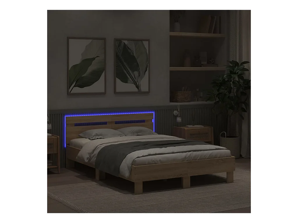 Lit double + tête de lit et LED chêne sonoma 120x190 cm FR77091