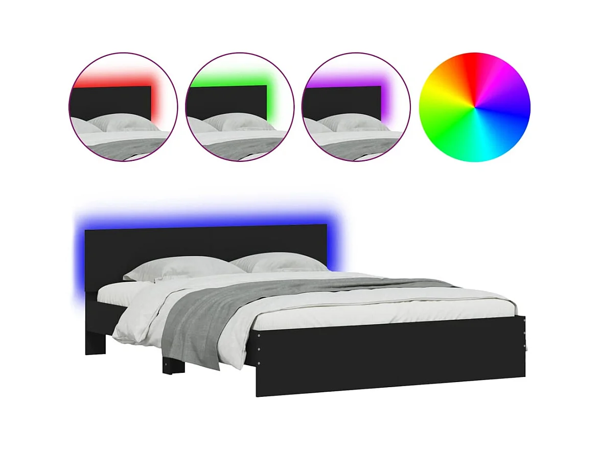 Lit double + tête de lit et LED noir 150x200 cm FR13074