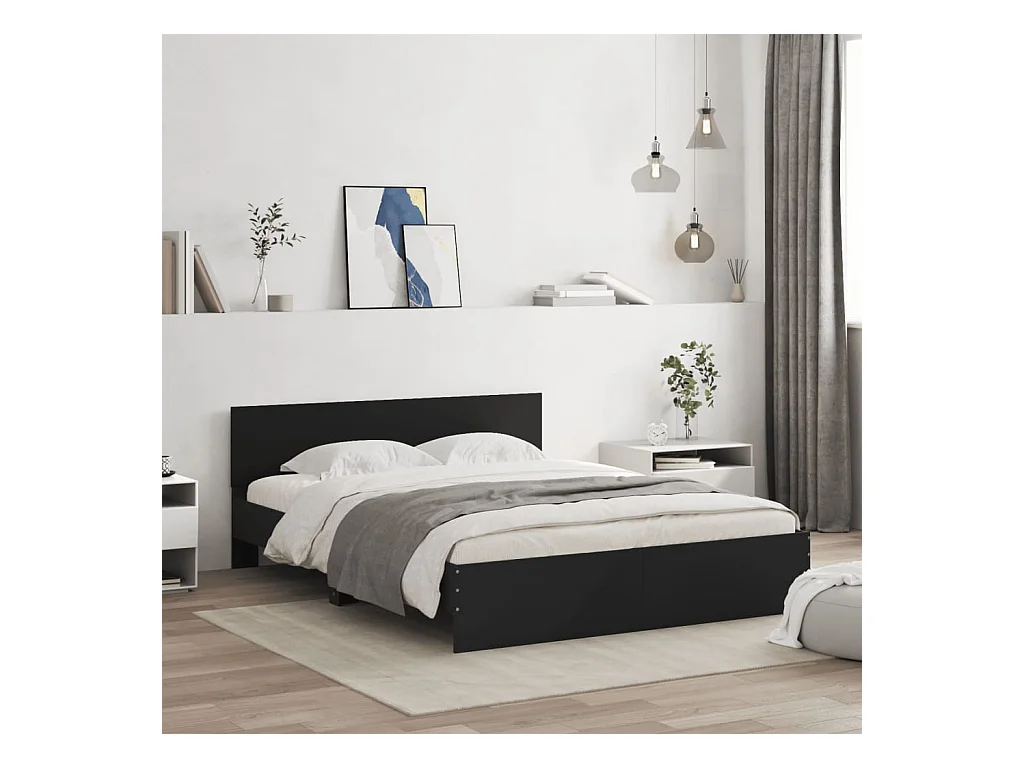 Lit double noir 150x200 cm bois d'ingénierie et métal FR85545