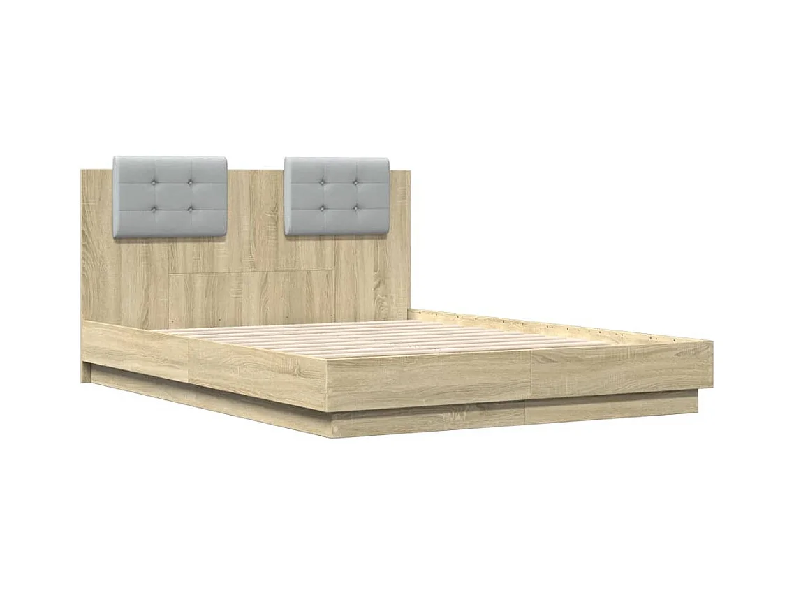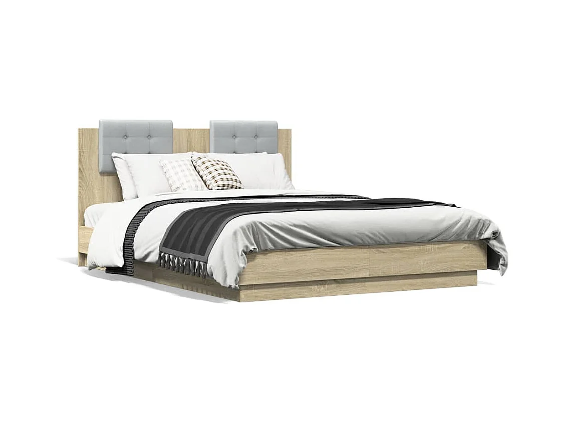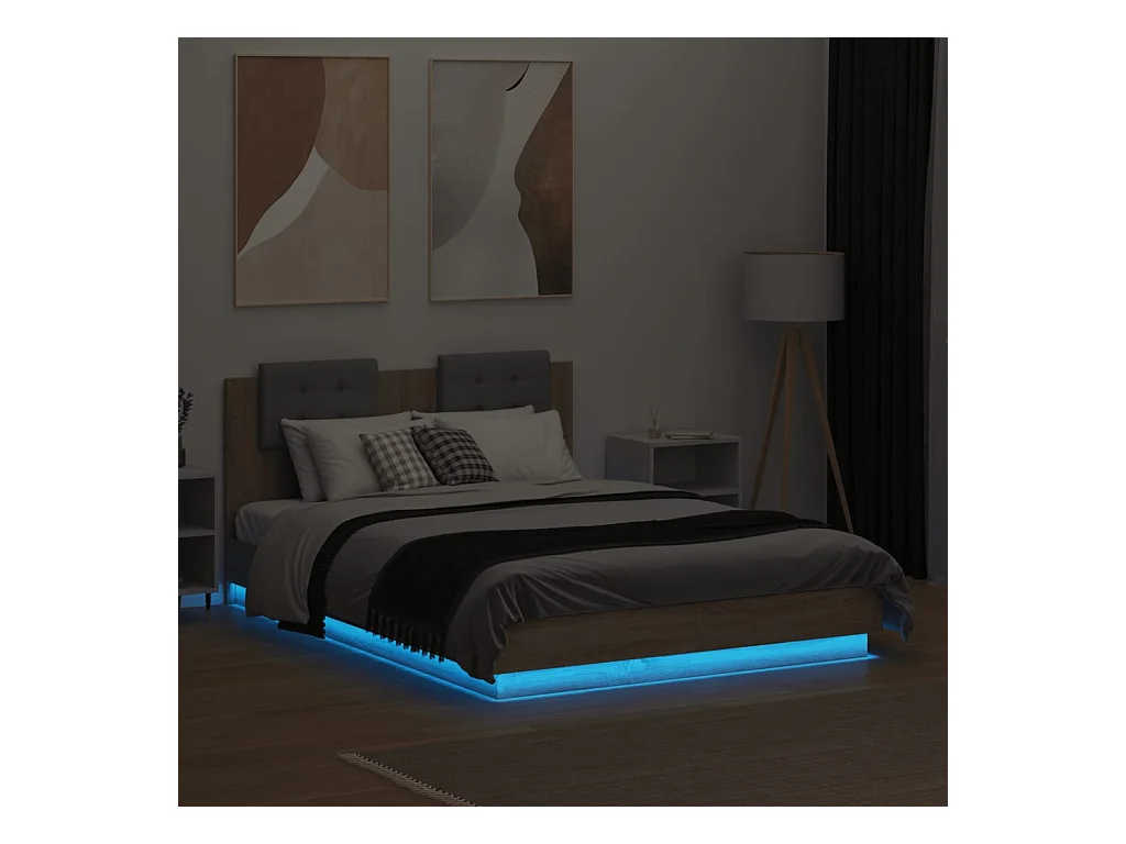 Lit double + tête de lit et LED chêne sonoma 135x190 cm FR34405