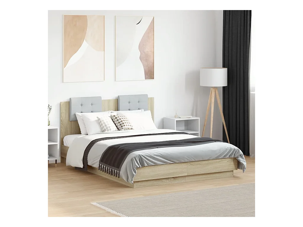 Lit double tête de lit et lumières LED chêne sonoma 135x190cm FR82786
