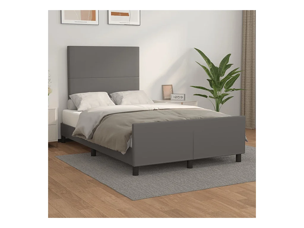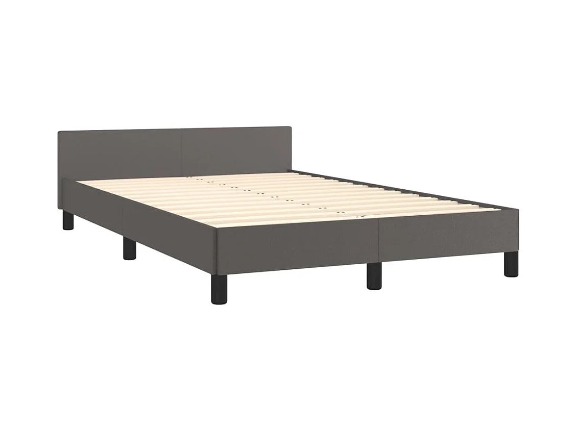 Lit double + tête de lit gris 120x190 cm similicuir FR53115
