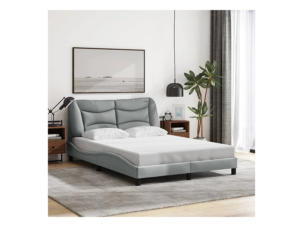 Lit double + tête de lit Gris clair 120x200 cm Tissu FR34048