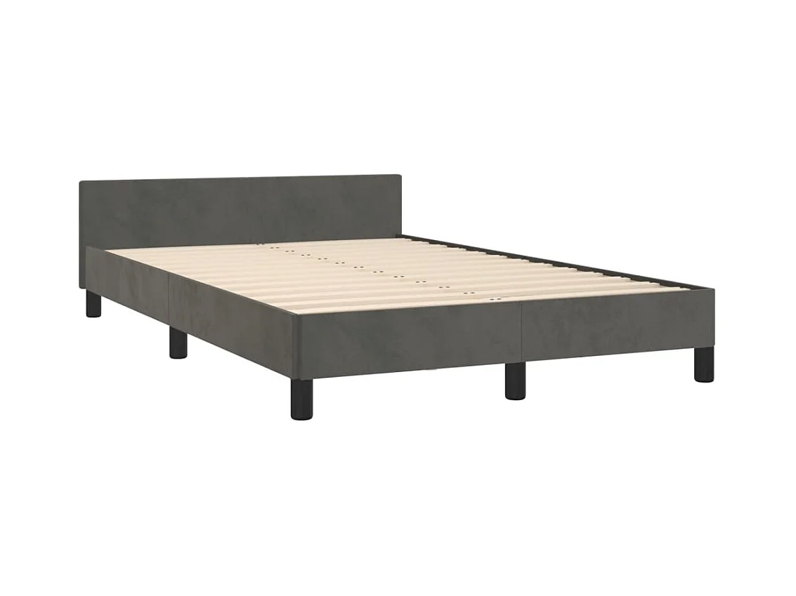 Lit double + tête de lit gris foncé 120x190 cm velours FR50263