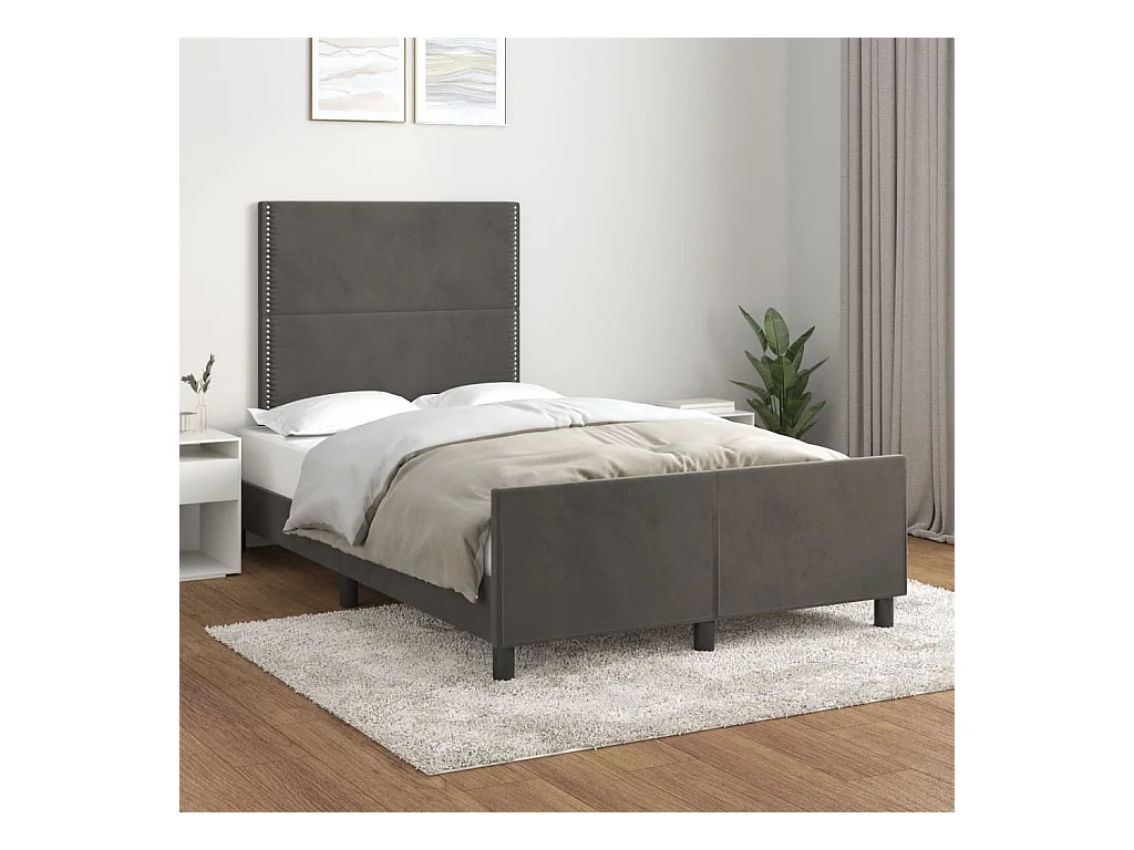 Lit double + tête de lit gris foncé 120x190 cm velours FR36423
