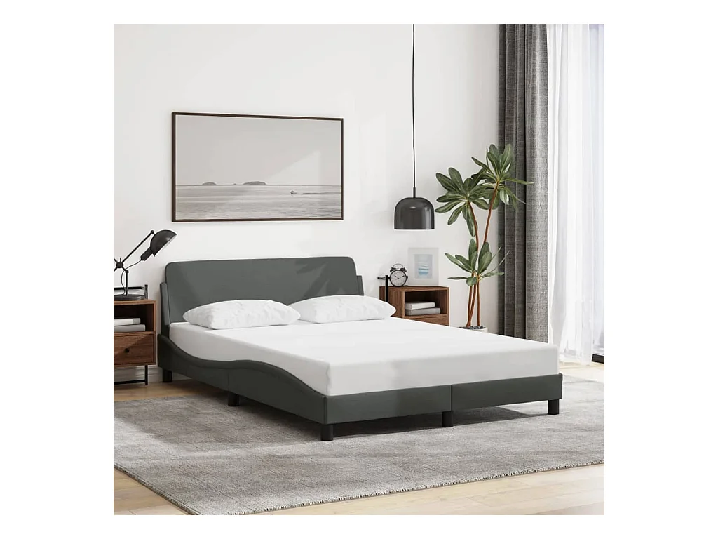 Lit double + tête de lit Gris foncé 120x200 cm Tissu FR89185