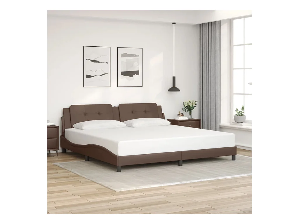 Lit double + tête de lit marron 200x200 cm Similicuir FR68683