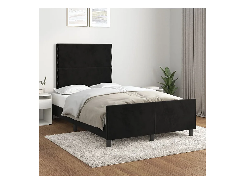 Lit double + tête de lit noir 120x190 cm velours FR49591