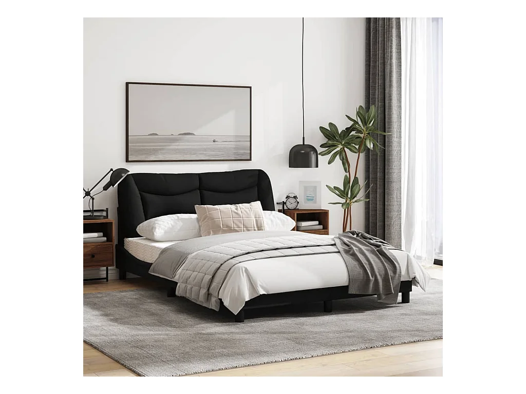 Lit double + tête de lit Noir 120x200 cm Tissu FR58414