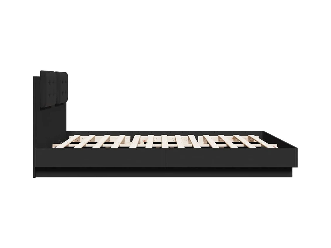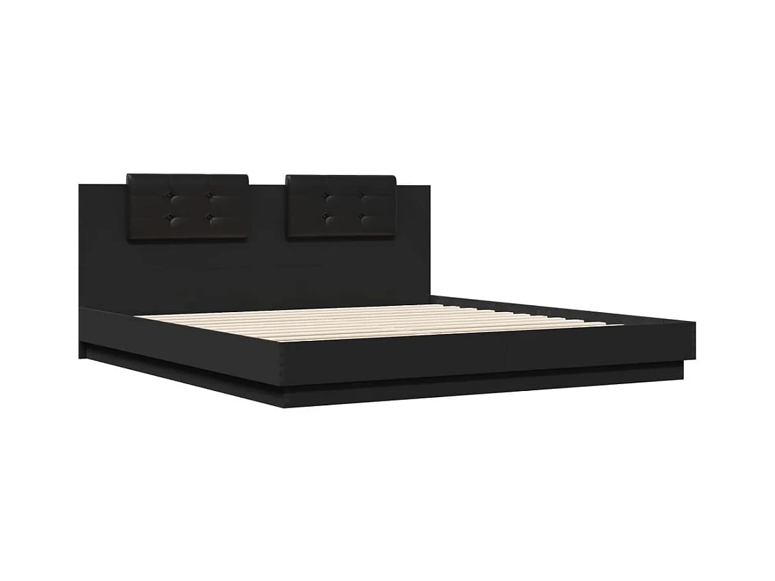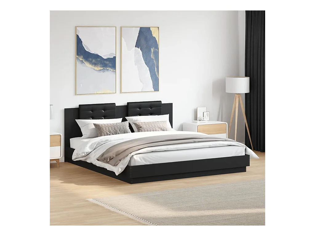 Lit double + tête de lit noir 160x200 cm bois d'ingénierie FR22321