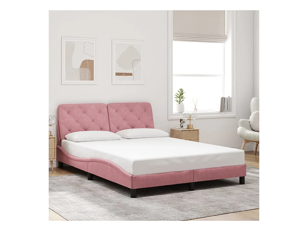 Lit double + tête de lit Rose 120x200 cm Velours FR72616
