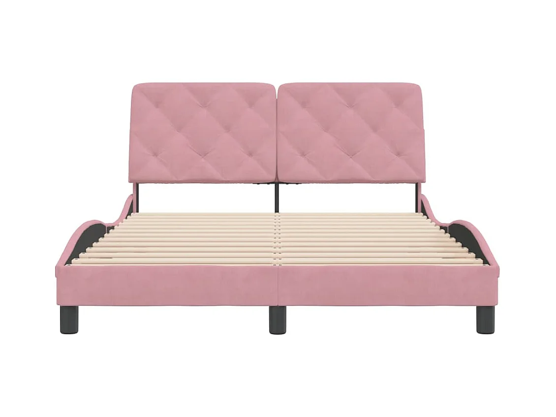 Lit double + tête de lit rose 120x190 cm velours FR98788