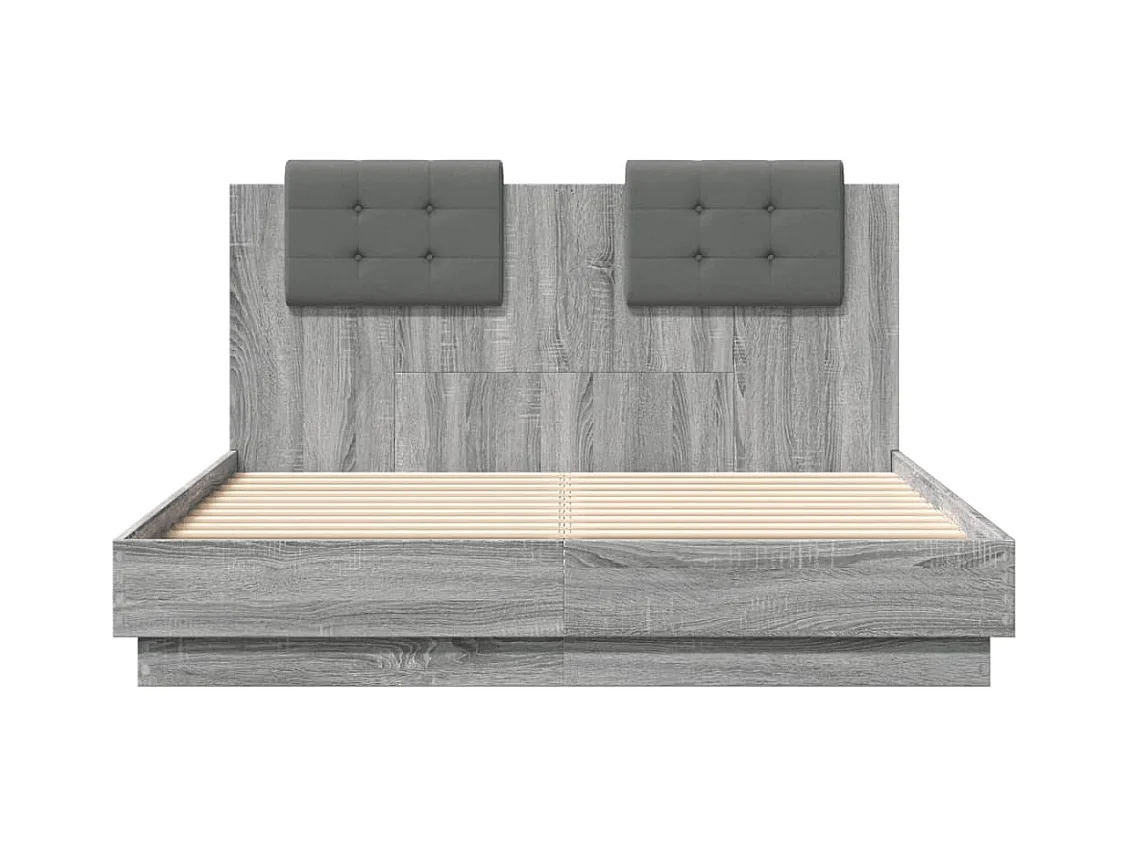 Lit double + tête de lit sonoma gris 120x190 cm FR15046