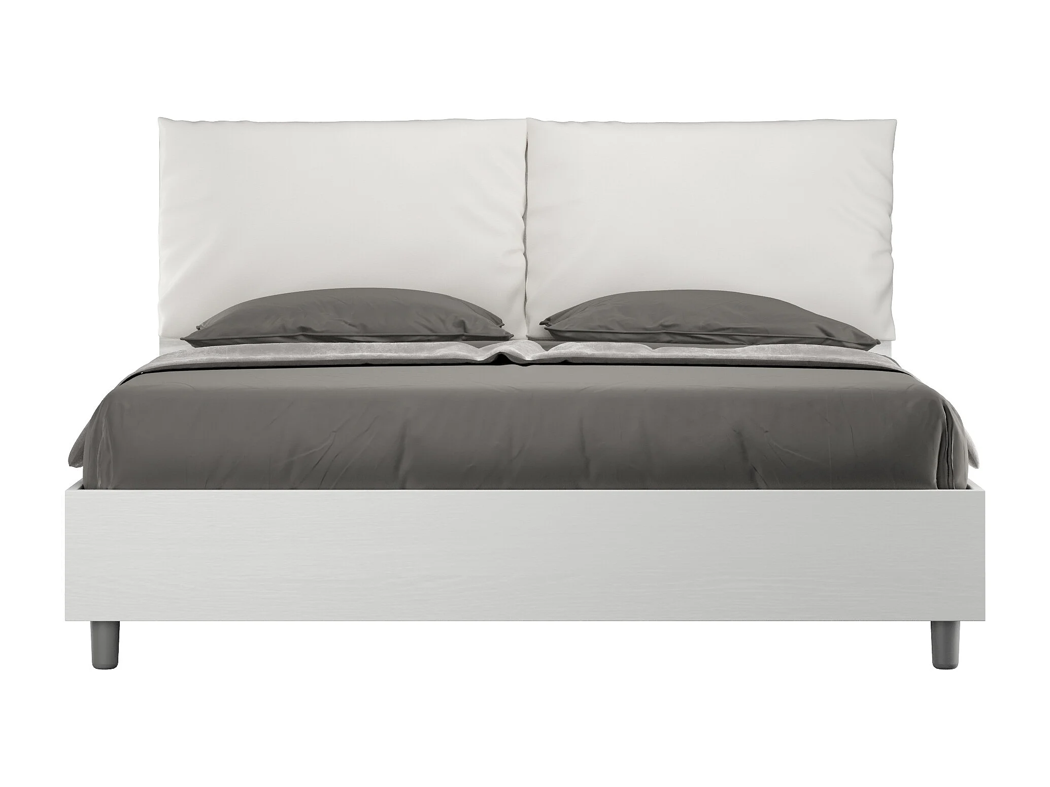 Lit queen size avec sommier 160x200 frêne blanc coussins similicuir blanc Egos Antea