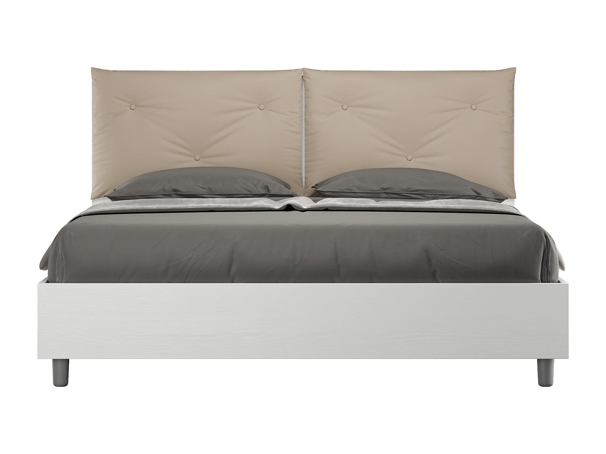 Lit queen size avec sommier 160x200 frêne blanc coussins similicuir taupe Egos Appia