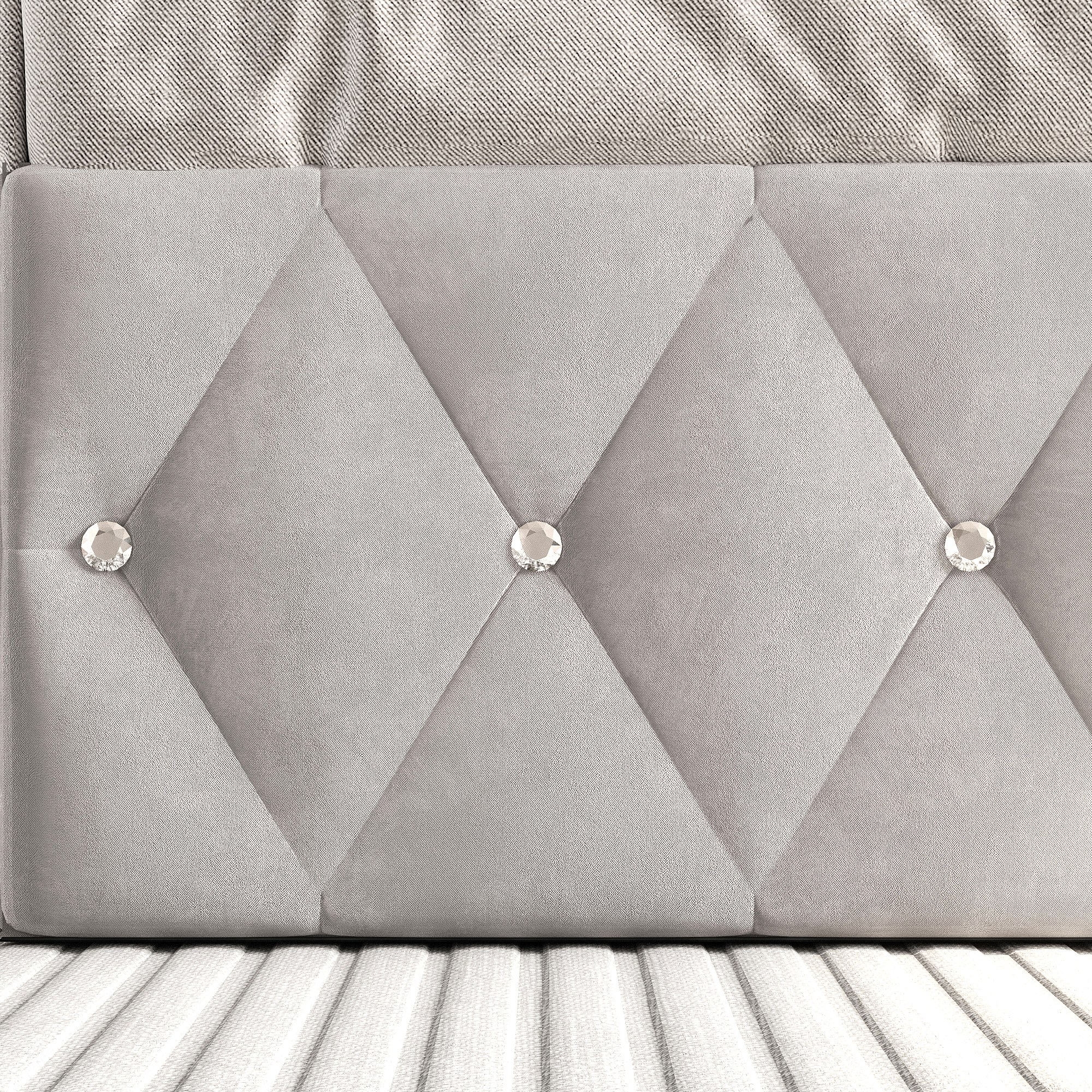 Lit 140x200 cm en velours beige avec tiroirs, tête de lit LED multicolore, USB/Type-C et rangement sous lit