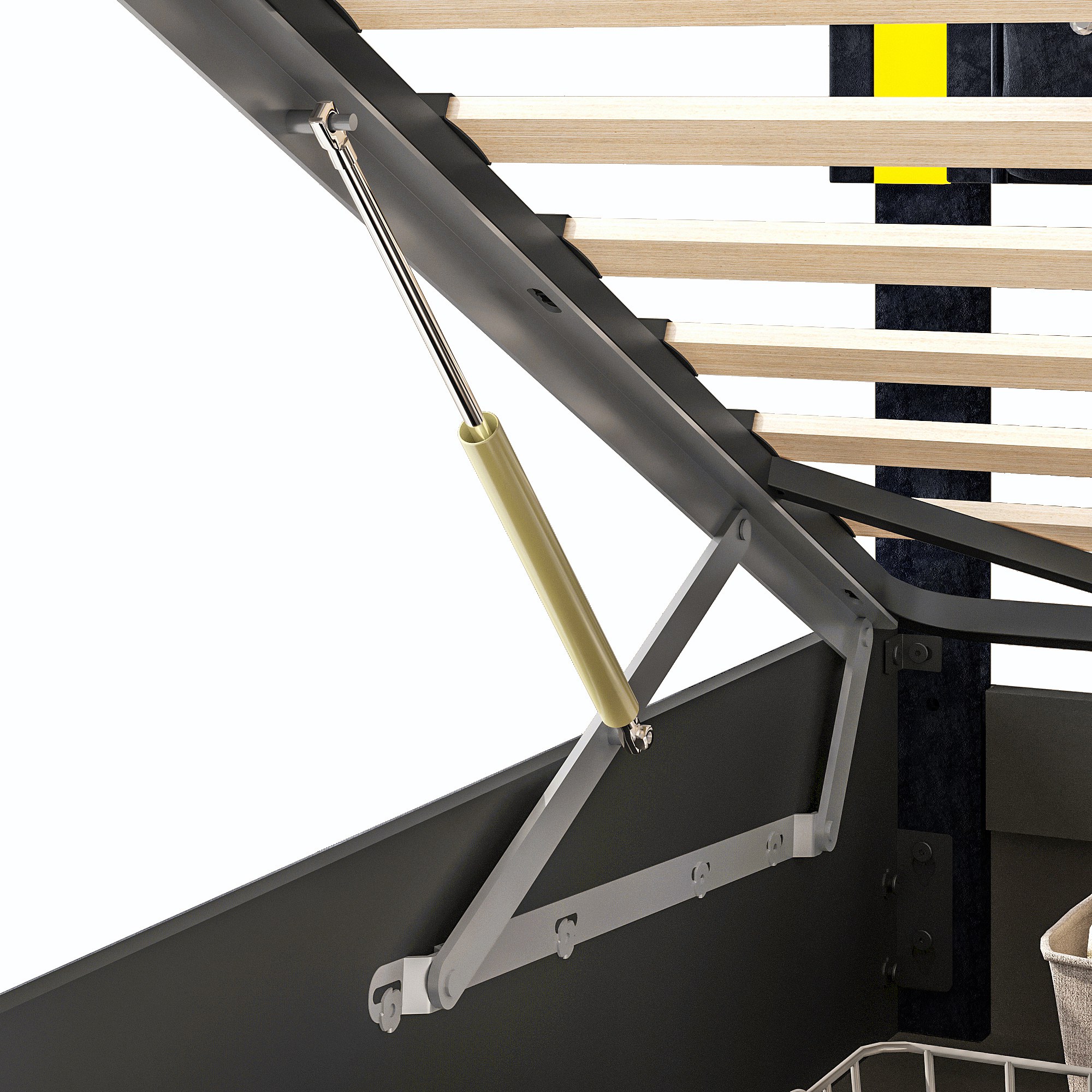 Lit élégant rembourré 140x200 avec grande tête de lit relevable, lit en velours avec LED, système de rangement hydraulique, lit beige élégant