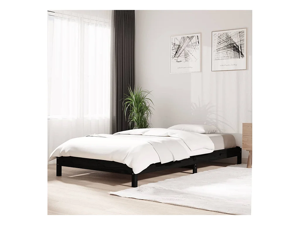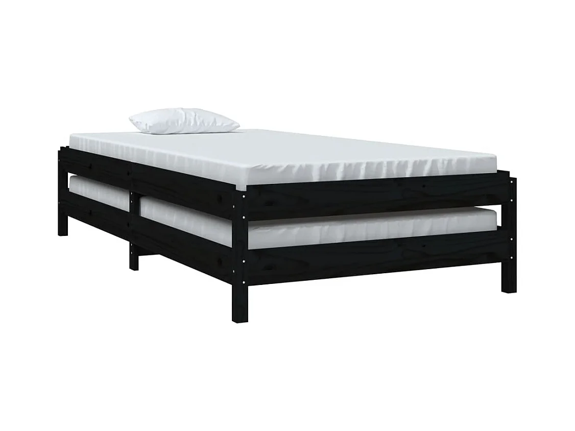 Lit empilable Noir 80x200 cm Bois de pin massif