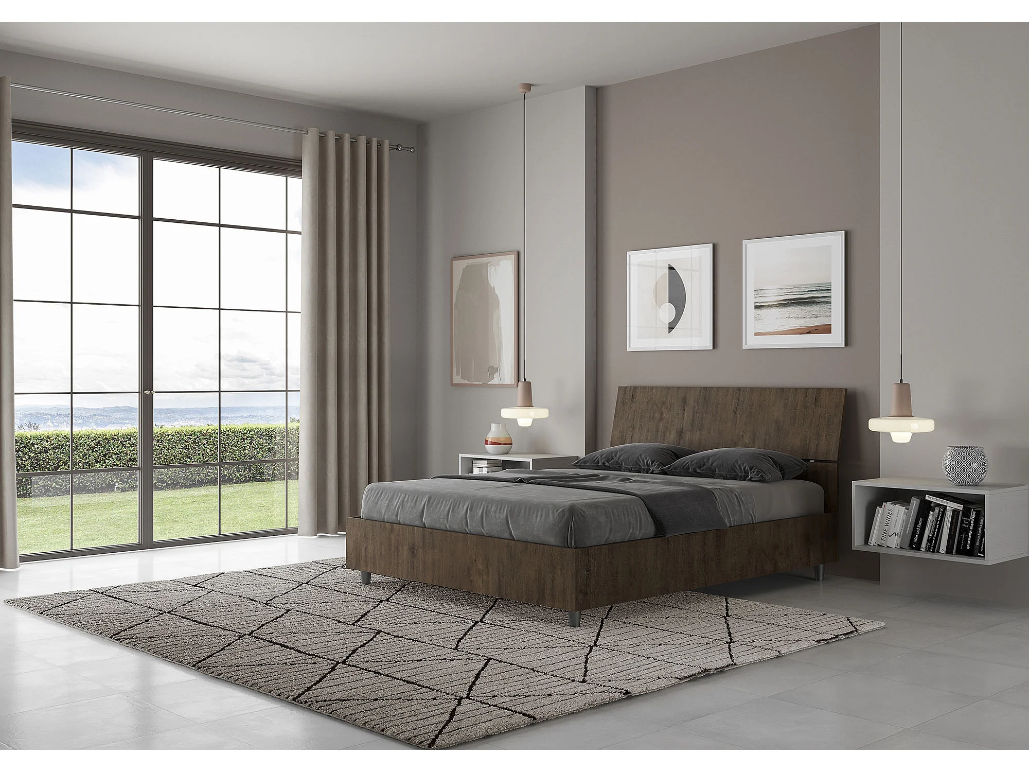 Lit double avec sommier 140x200 tête de lit inclinée noyer Demas