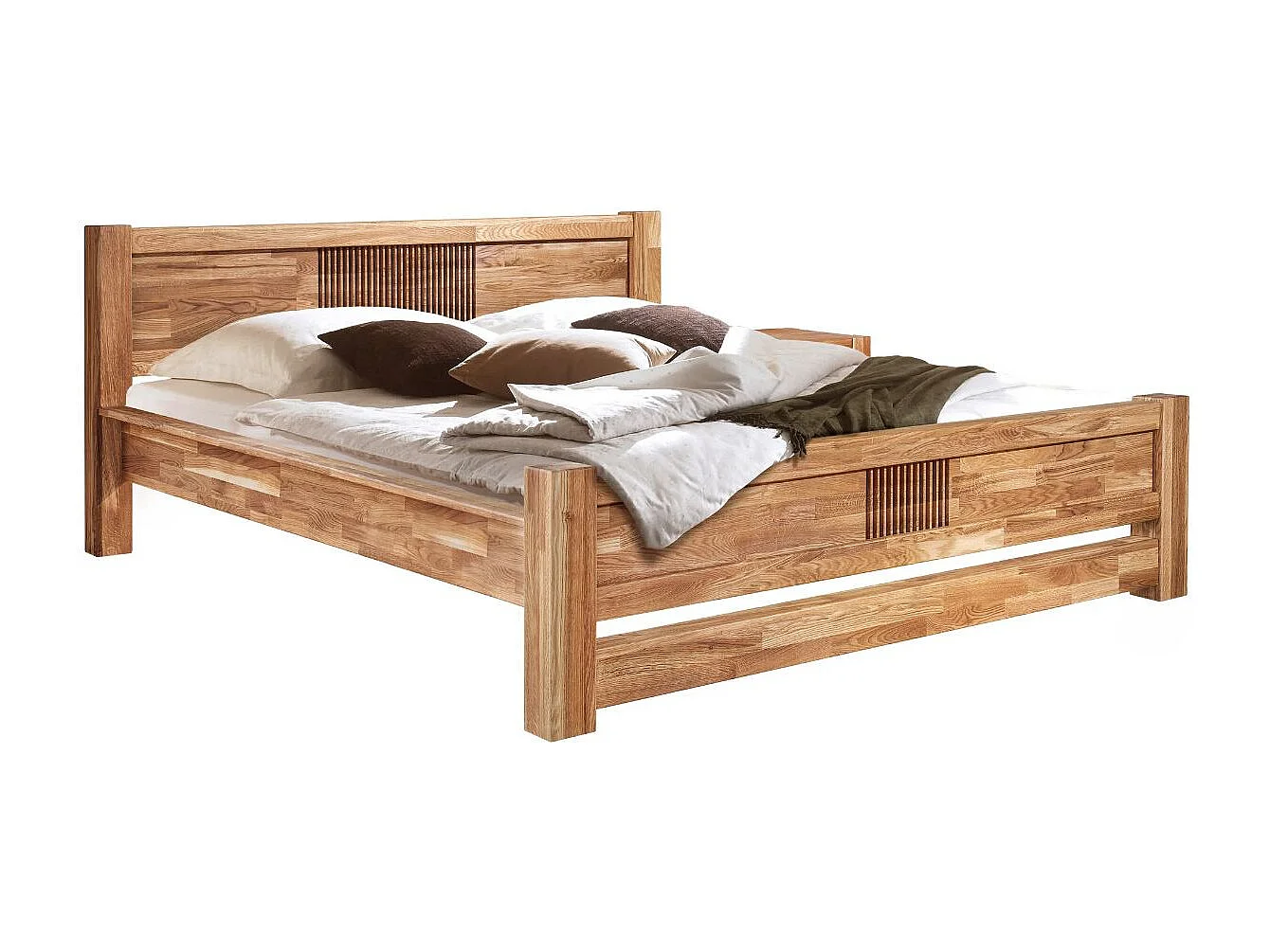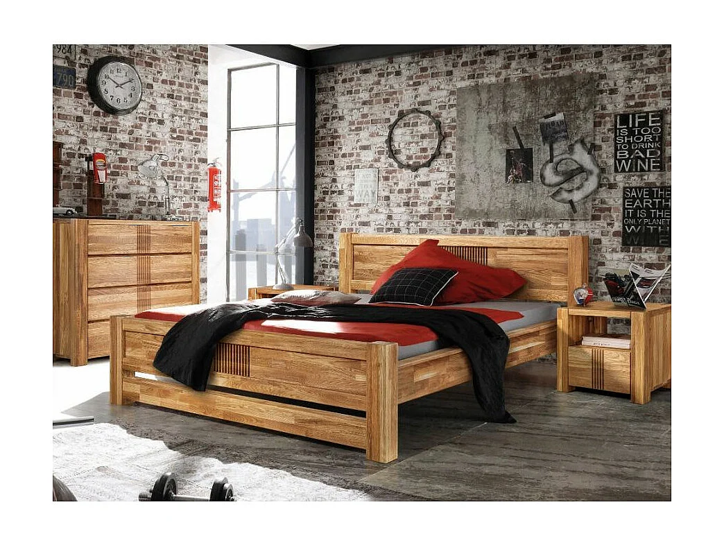 Lit en chêne massif avec tête de lit et 2 tables de chevet Manola-180x200