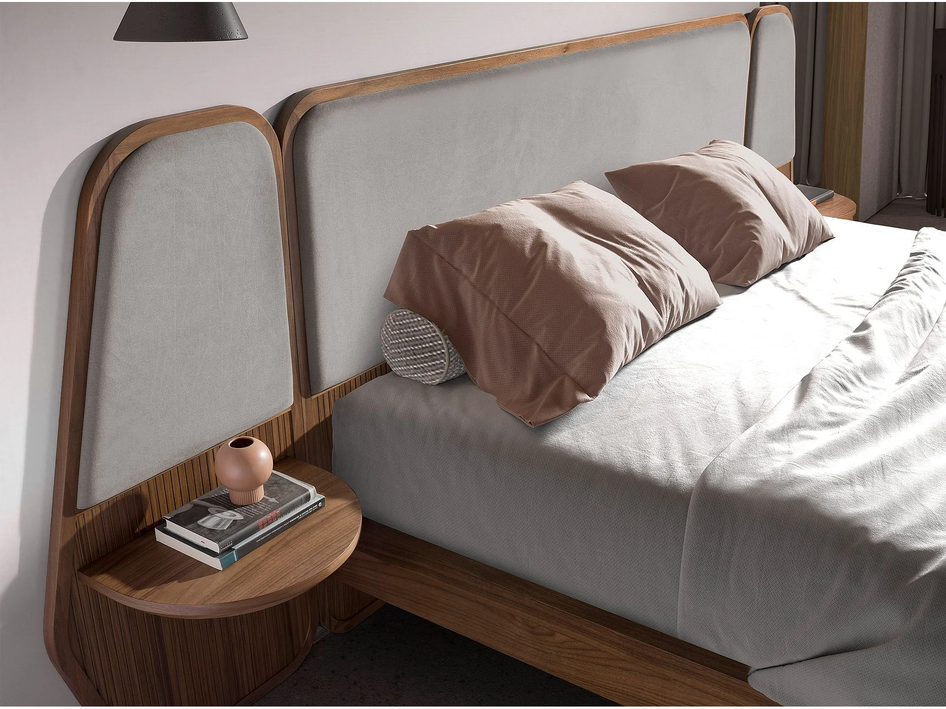 Lit en noyer et tissu gris 7175 ANGEL CERDA