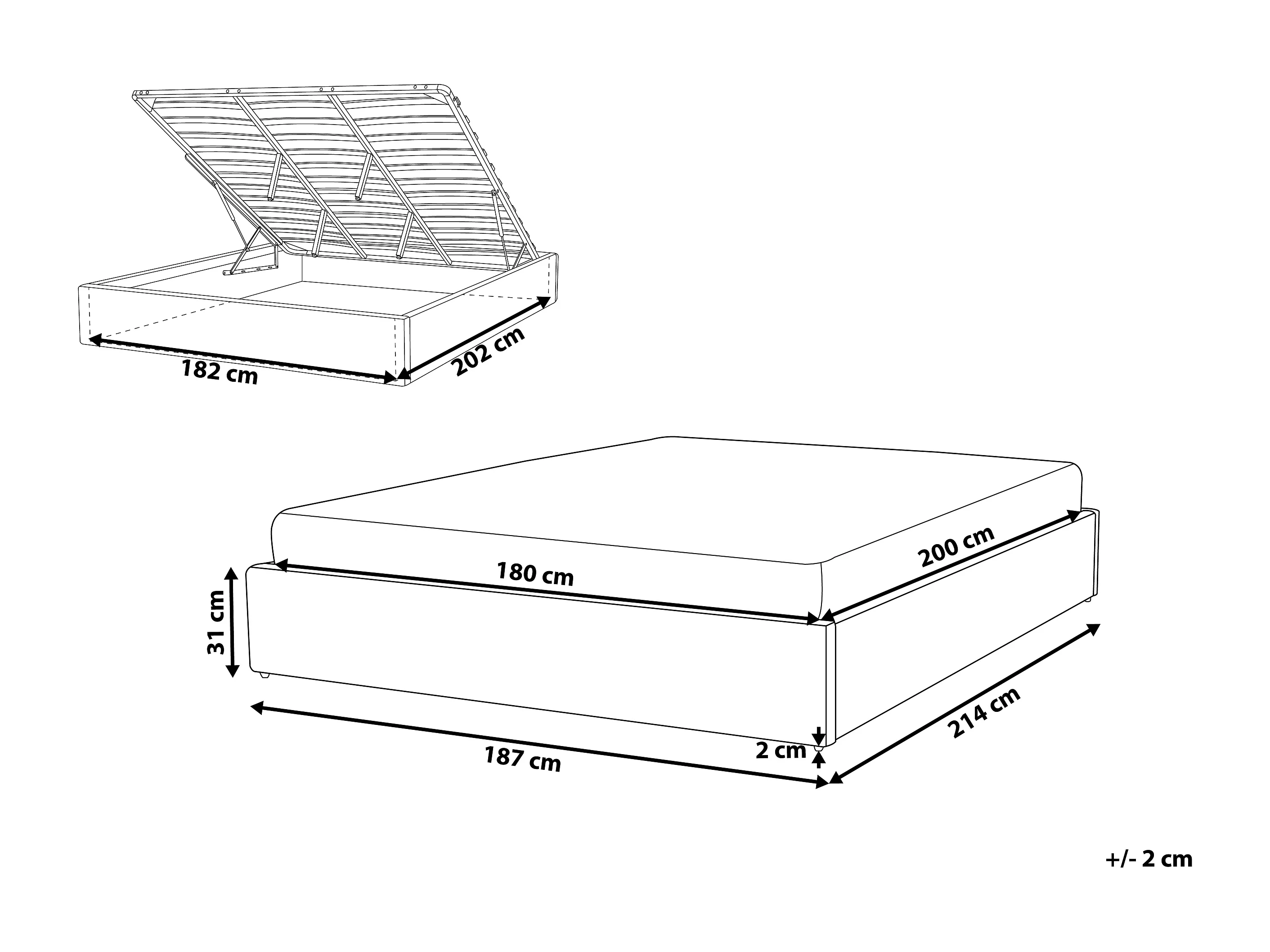 Lit ottoman sans tête de lit Tissu DINAN 180 x 200 cm Gris foncé