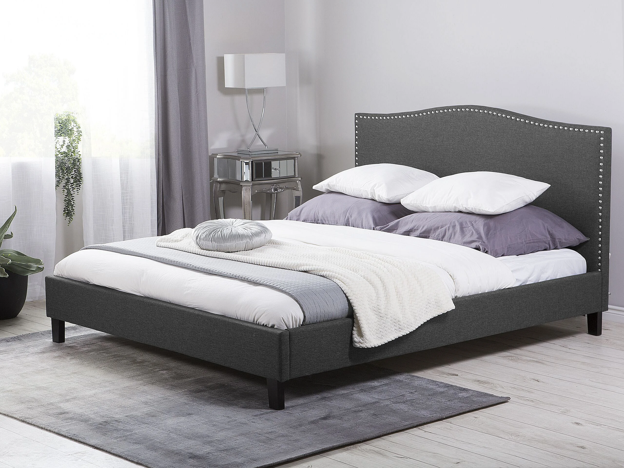 Lit avec sommier Tissu MONTPELLIER 180 x 200 cm Gris foncé