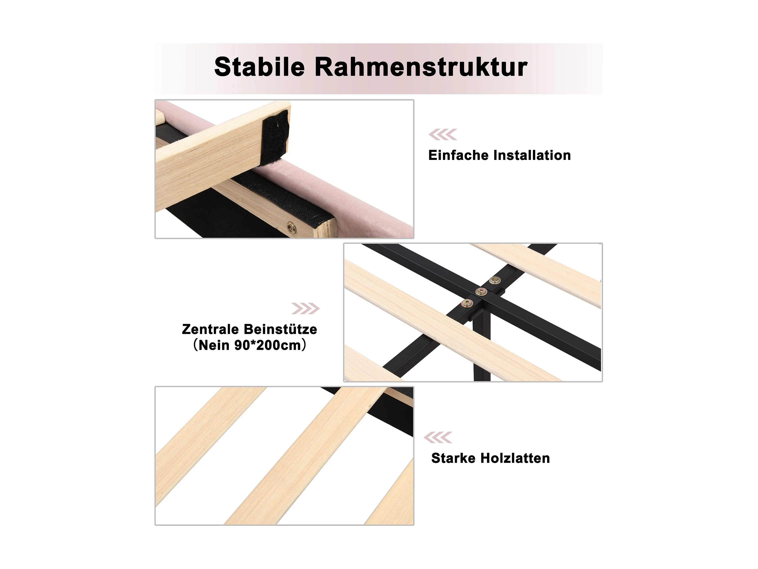 Cadre de lit et tête de lit sans matelas rose 140x190cm velours