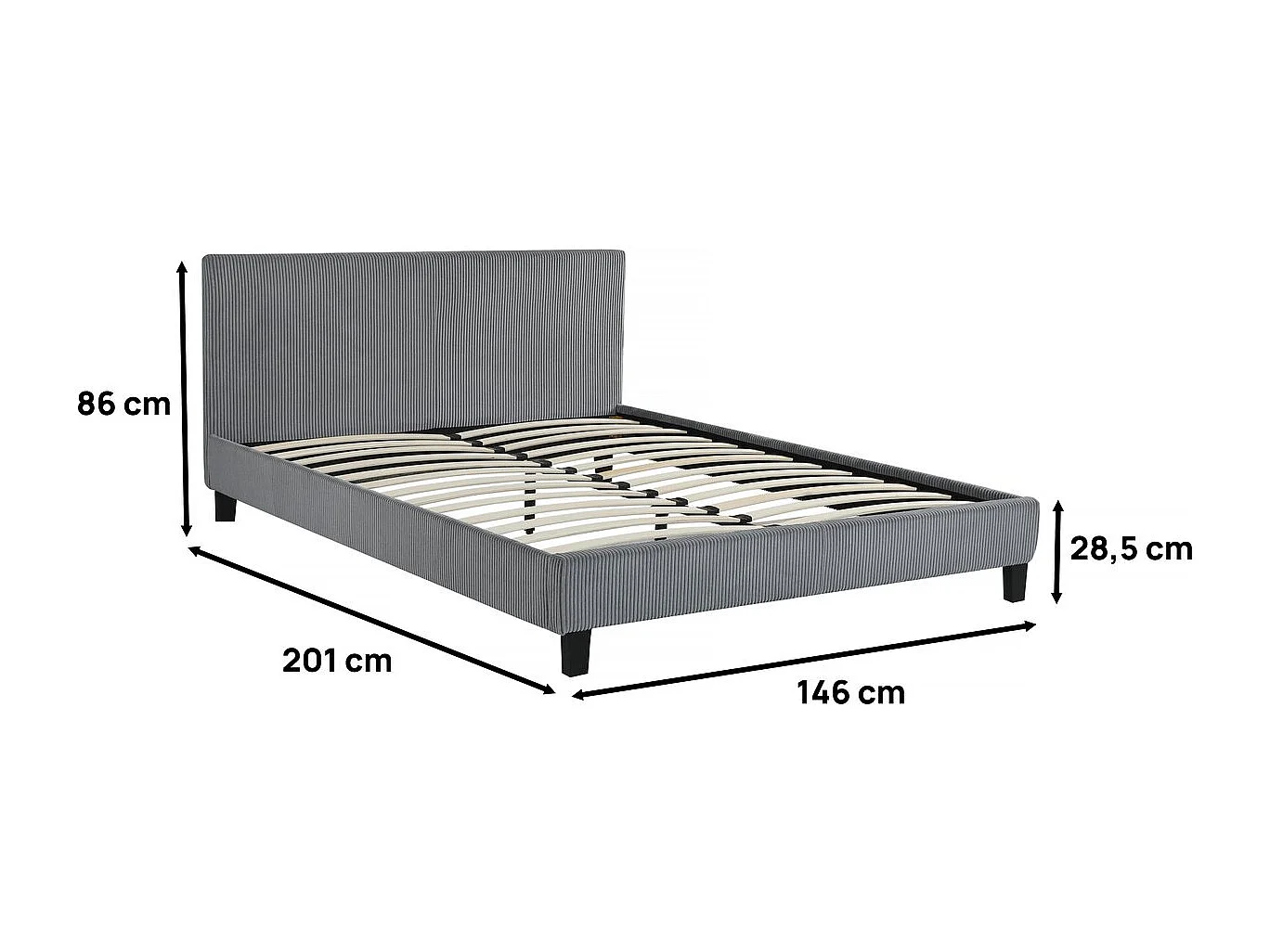 Lit en Velours Cotelé "Ambre" - 140 x 190 - Gris