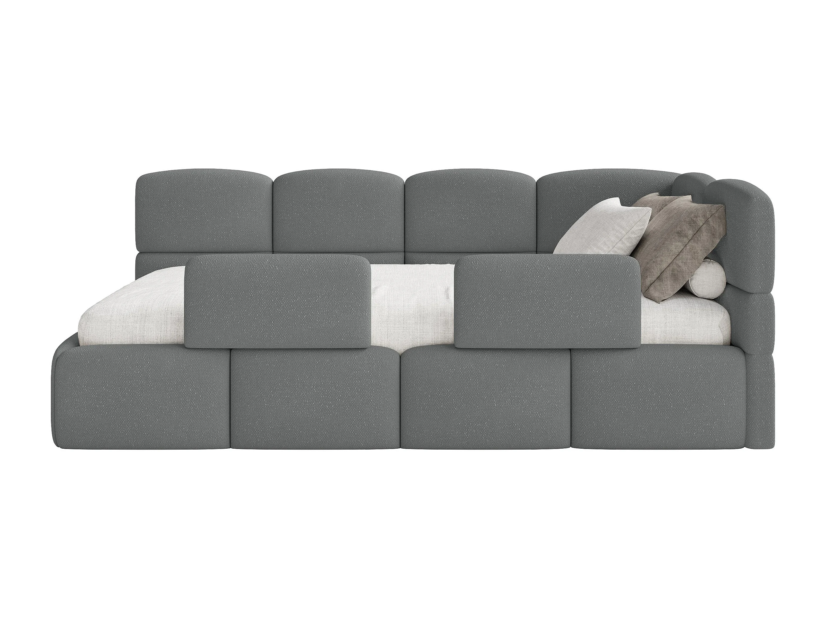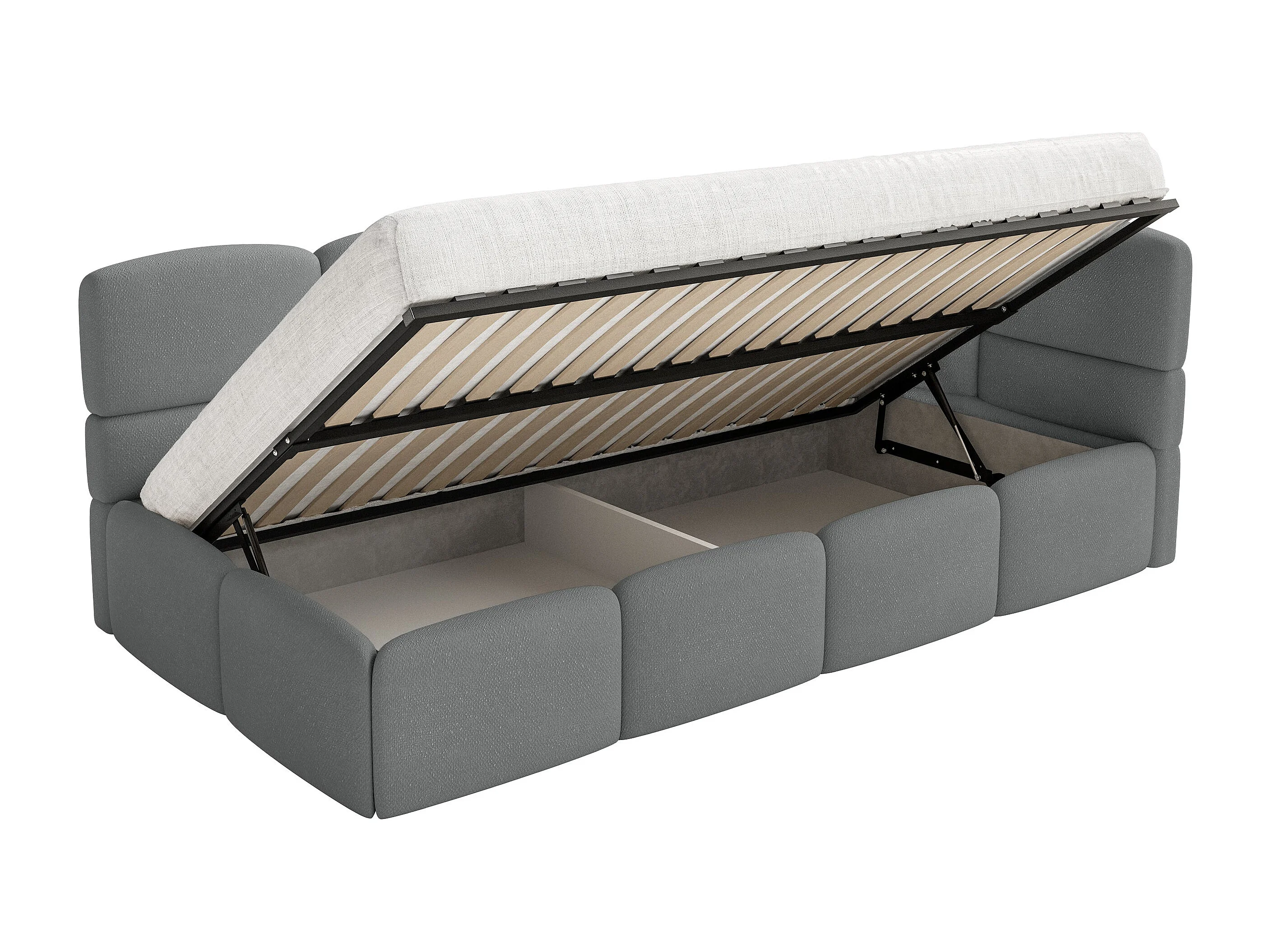 Lit enfant 120x200 cm – tête de lit à droite – matelas & coffre de rangement – chenille gris foncé – CLOUDY