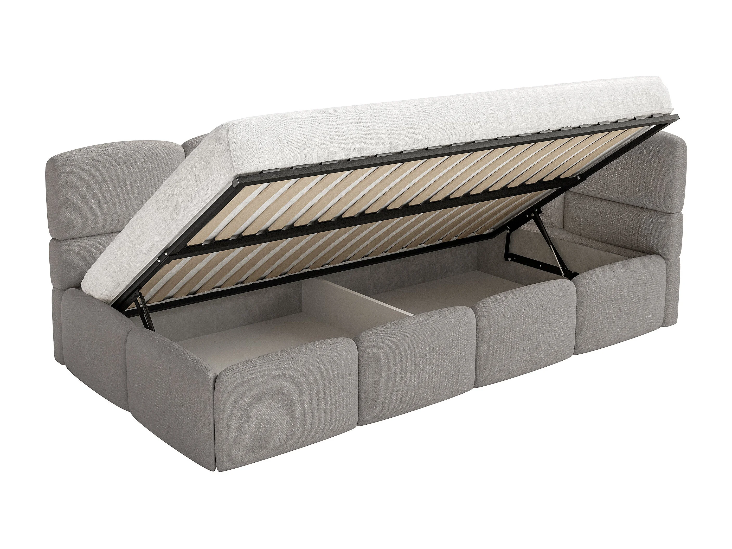 Lit enfant 120x200 cm – tête de lit à droite – matelas & coffre de rangement – chenille marron clair – CLOUDY