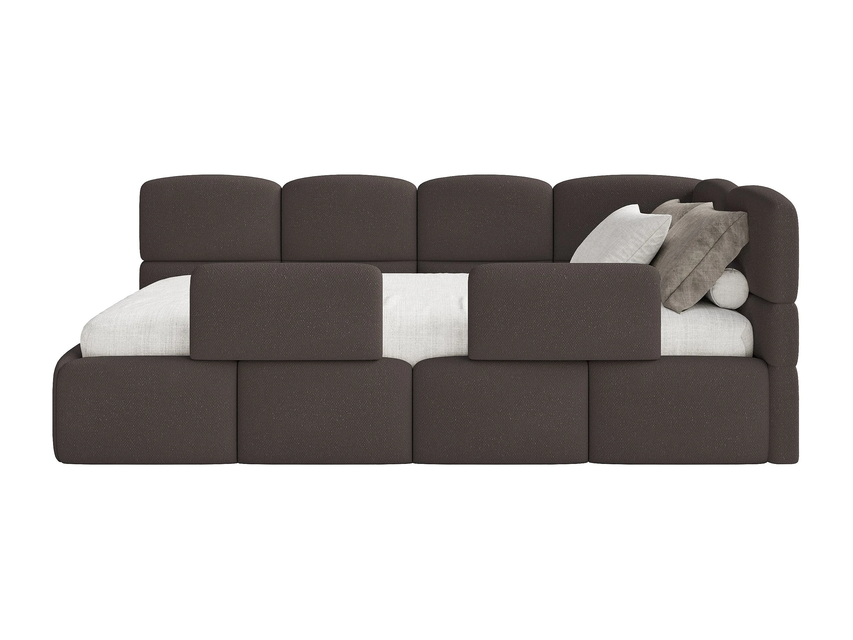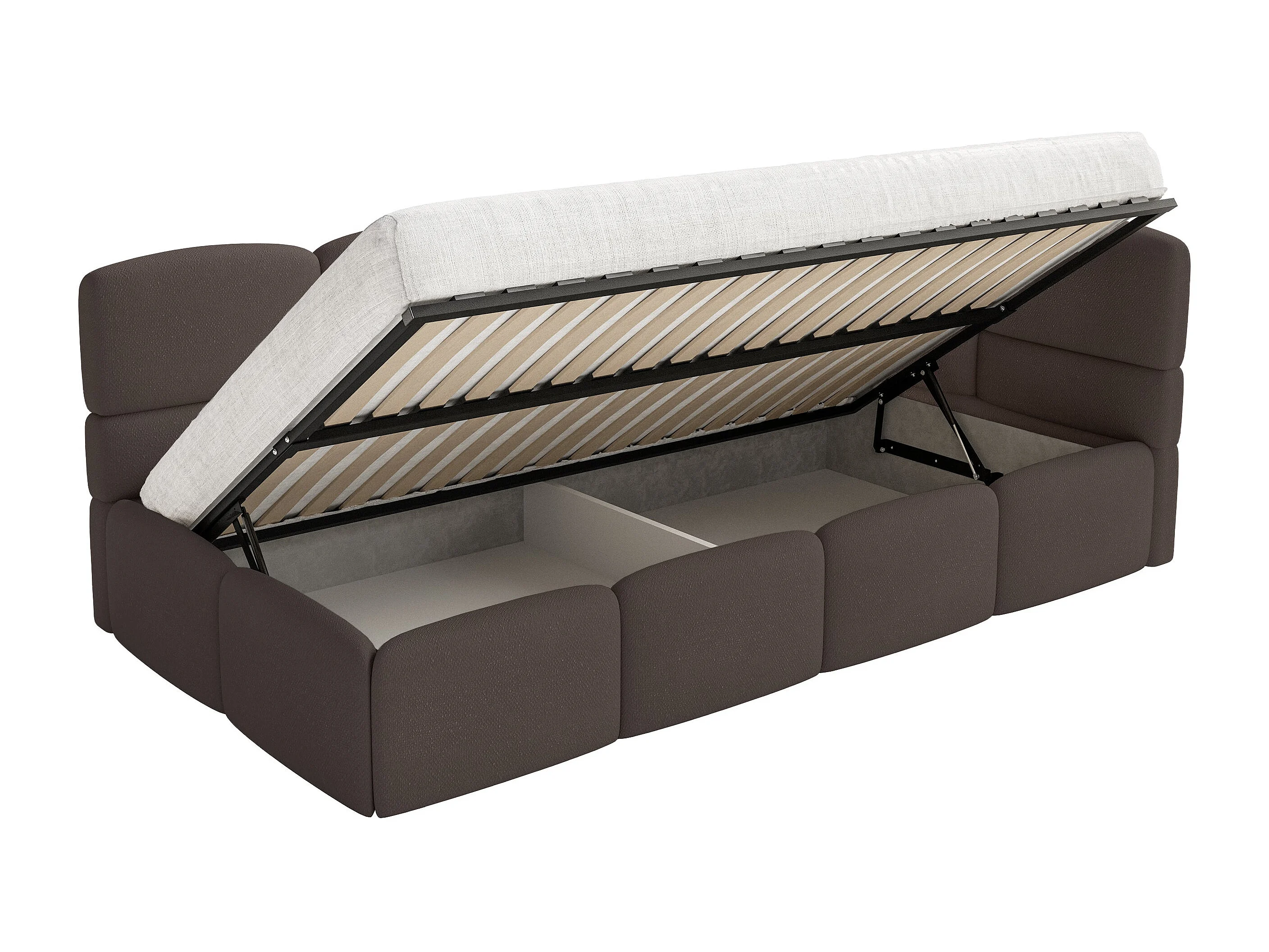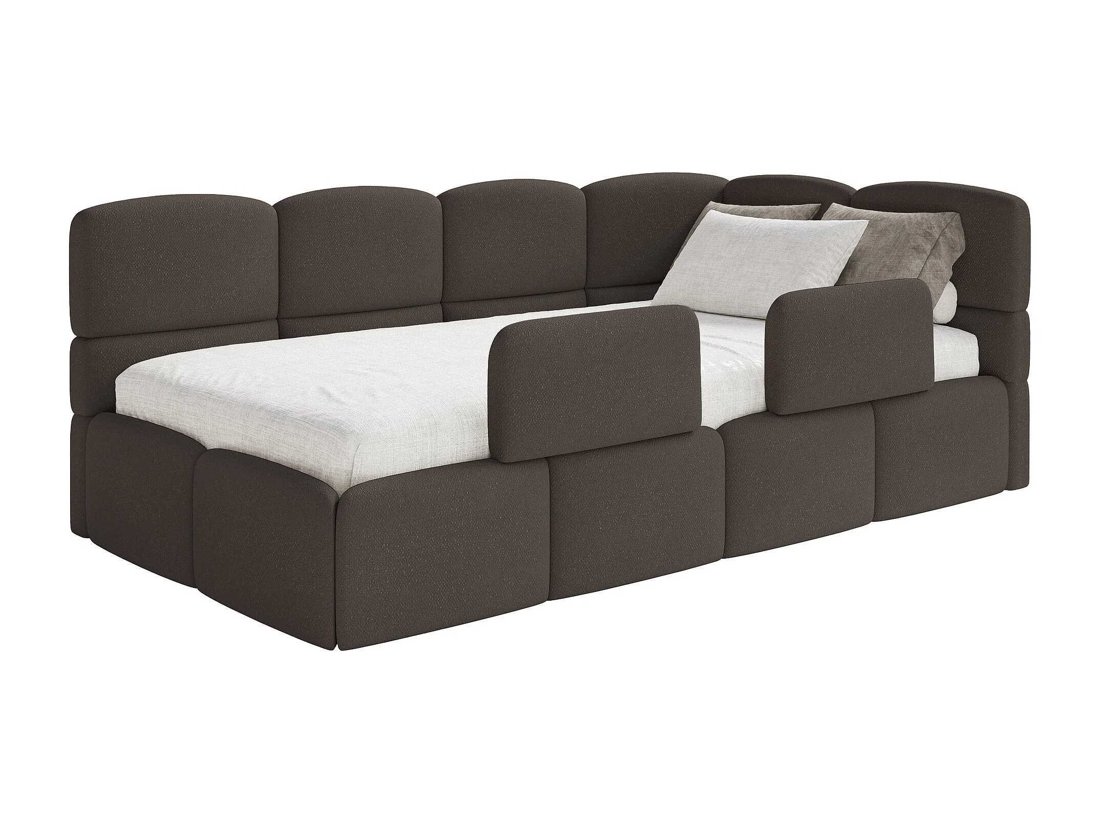 Lit enfant 120x200 cm – tête de lit à droite – matelas & coffre de rangement – chenille marron – CLOUDY