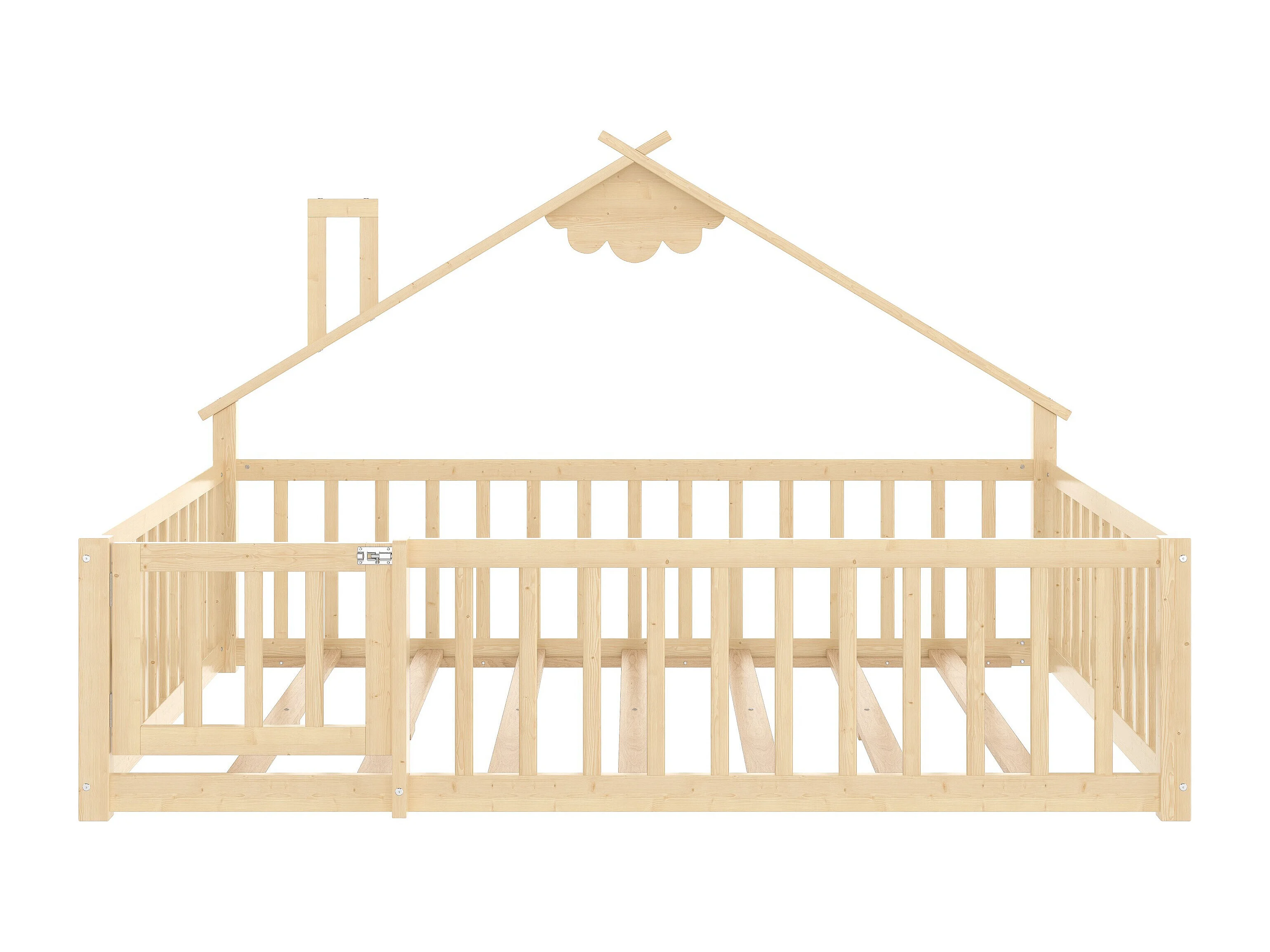 Lit enfant 140x190 cm Lit double avec barrières de sécurité et sommier à lattes - pin - naturel (sans matelas)