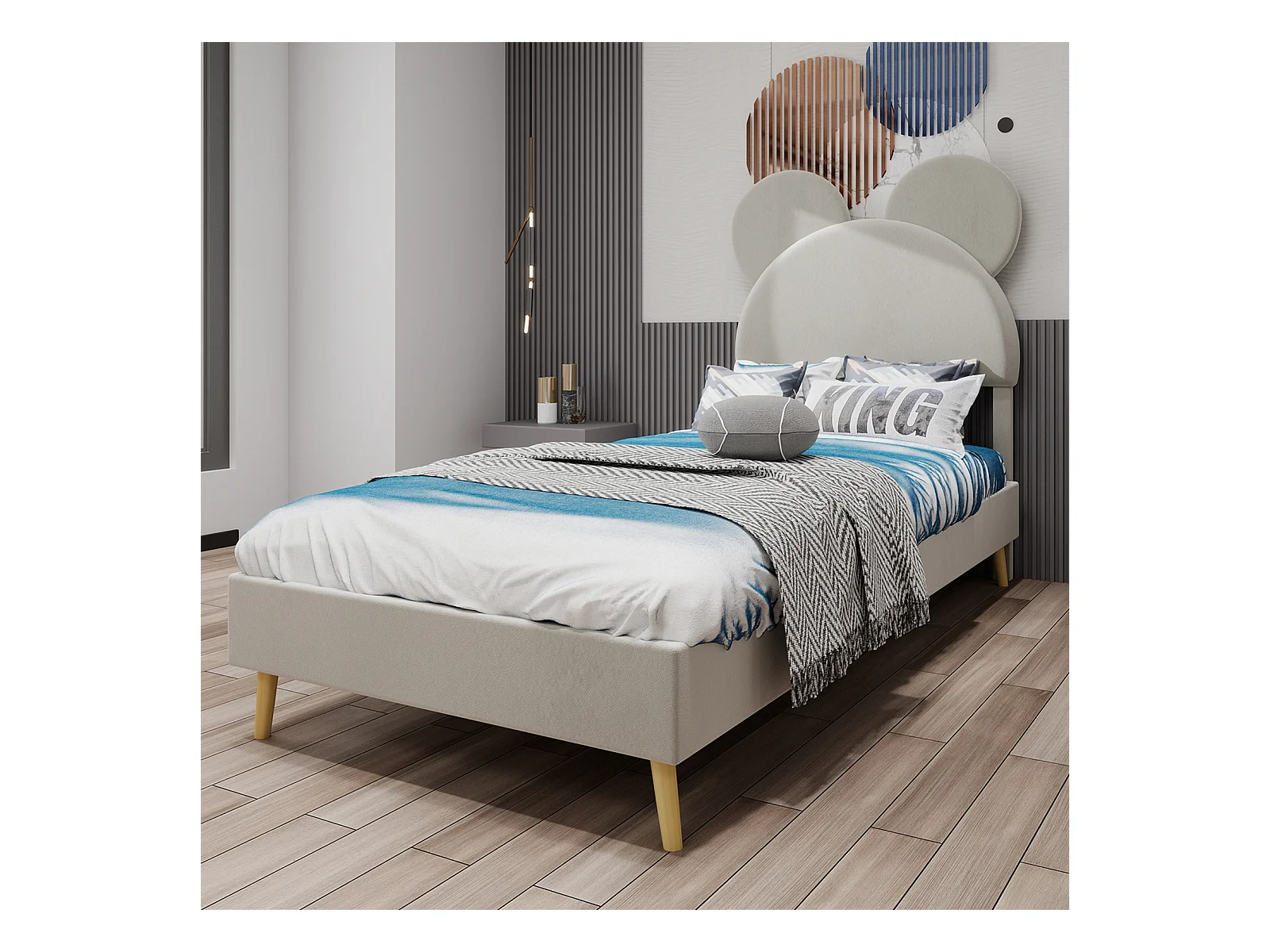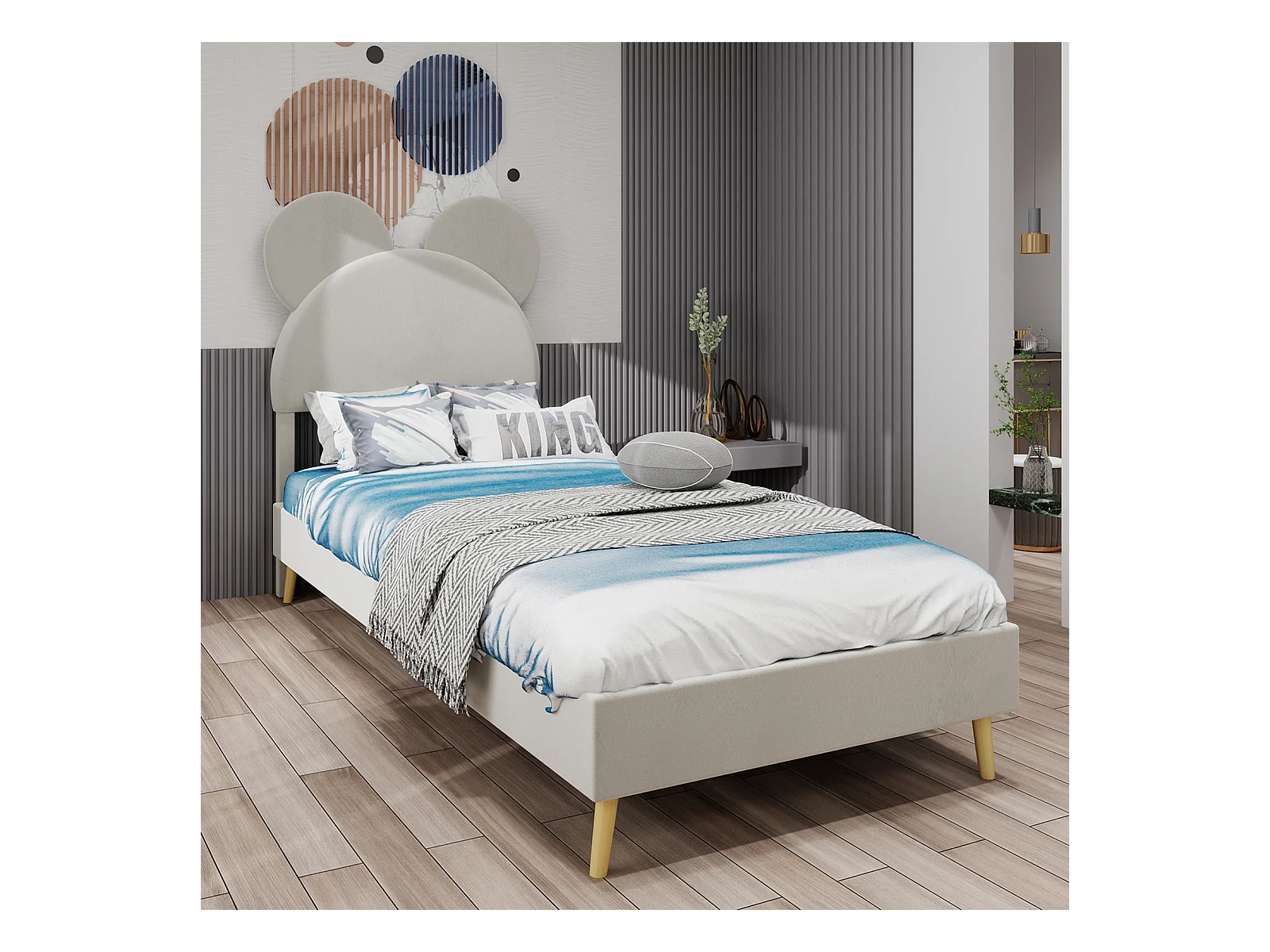 Lit enfant 140x200 cm avec tête de lit dessin animé et sommier à lattes - velours beige (sans matelas)