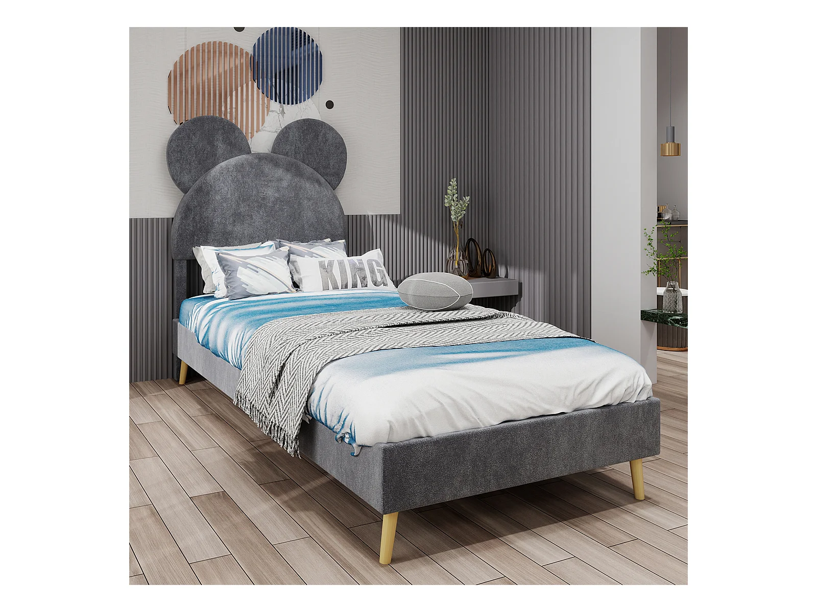 Lit enfant 140x200 cm avec tête de lit dessin animé et sommier à lattes - velours gris (sans matelas)