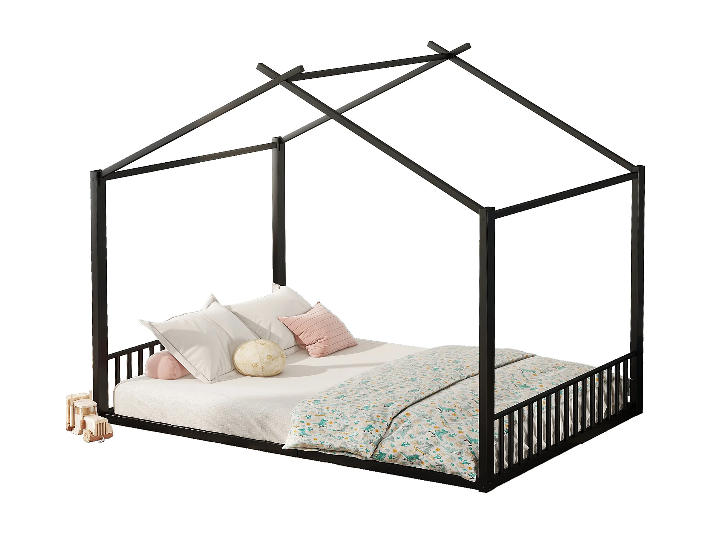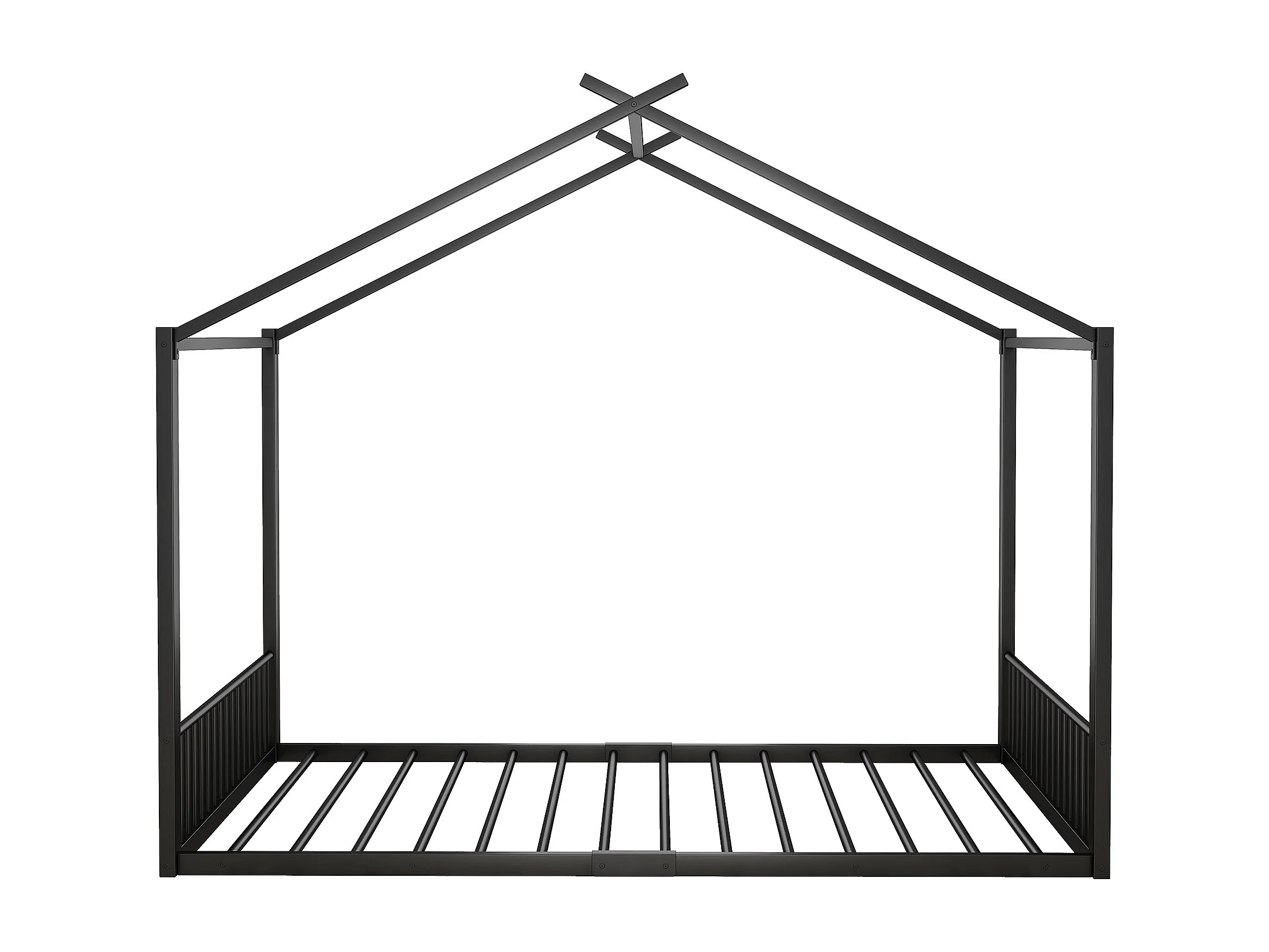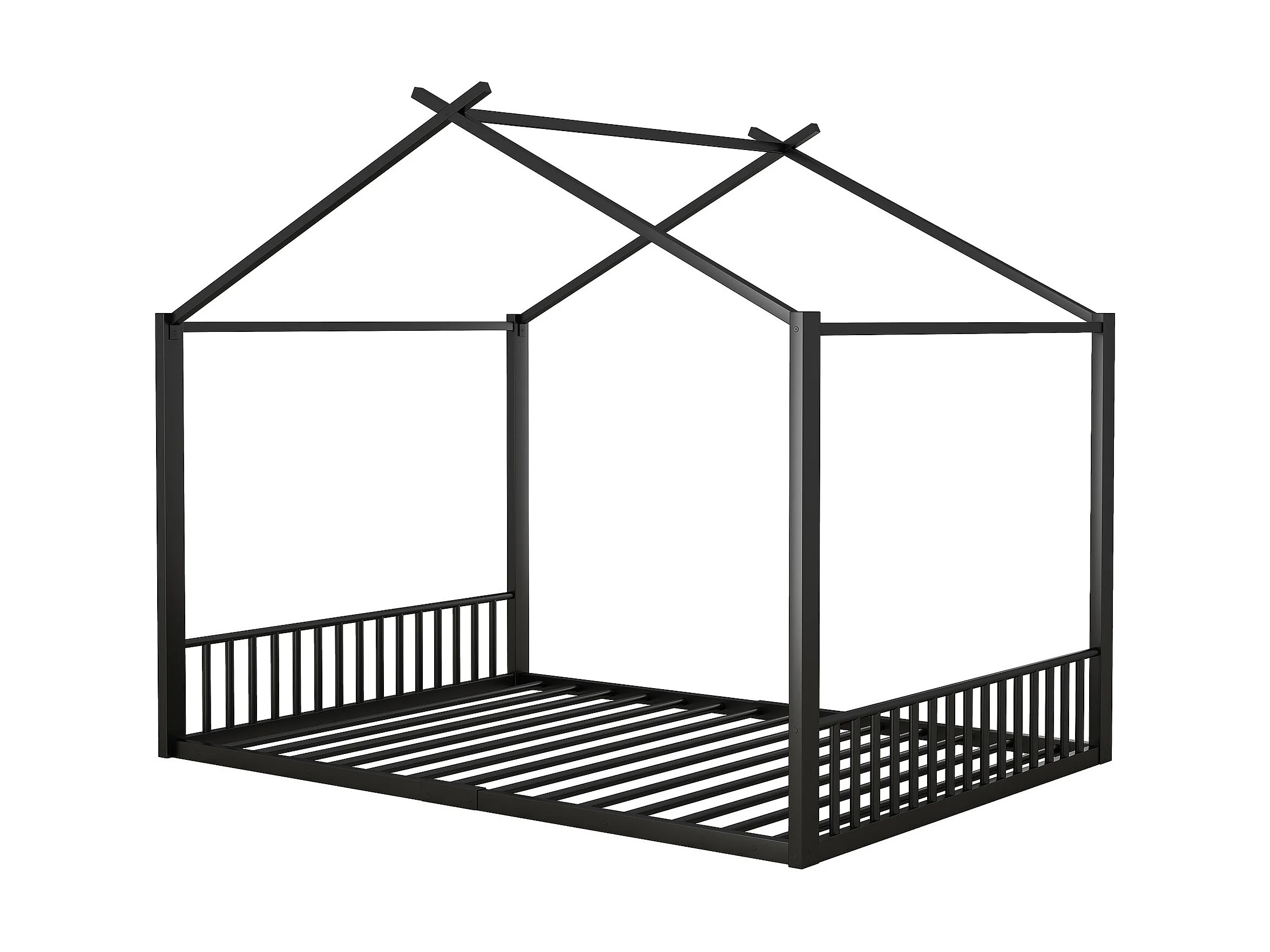 Lit enfant 140x200 cm, lit avec cadre métallique, design maison, noir (205x147x165 cm)