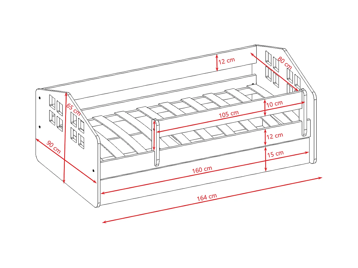 Lit Enfant à barrière 160x80cm avec tiroir et matelas inclus - CLASSIC