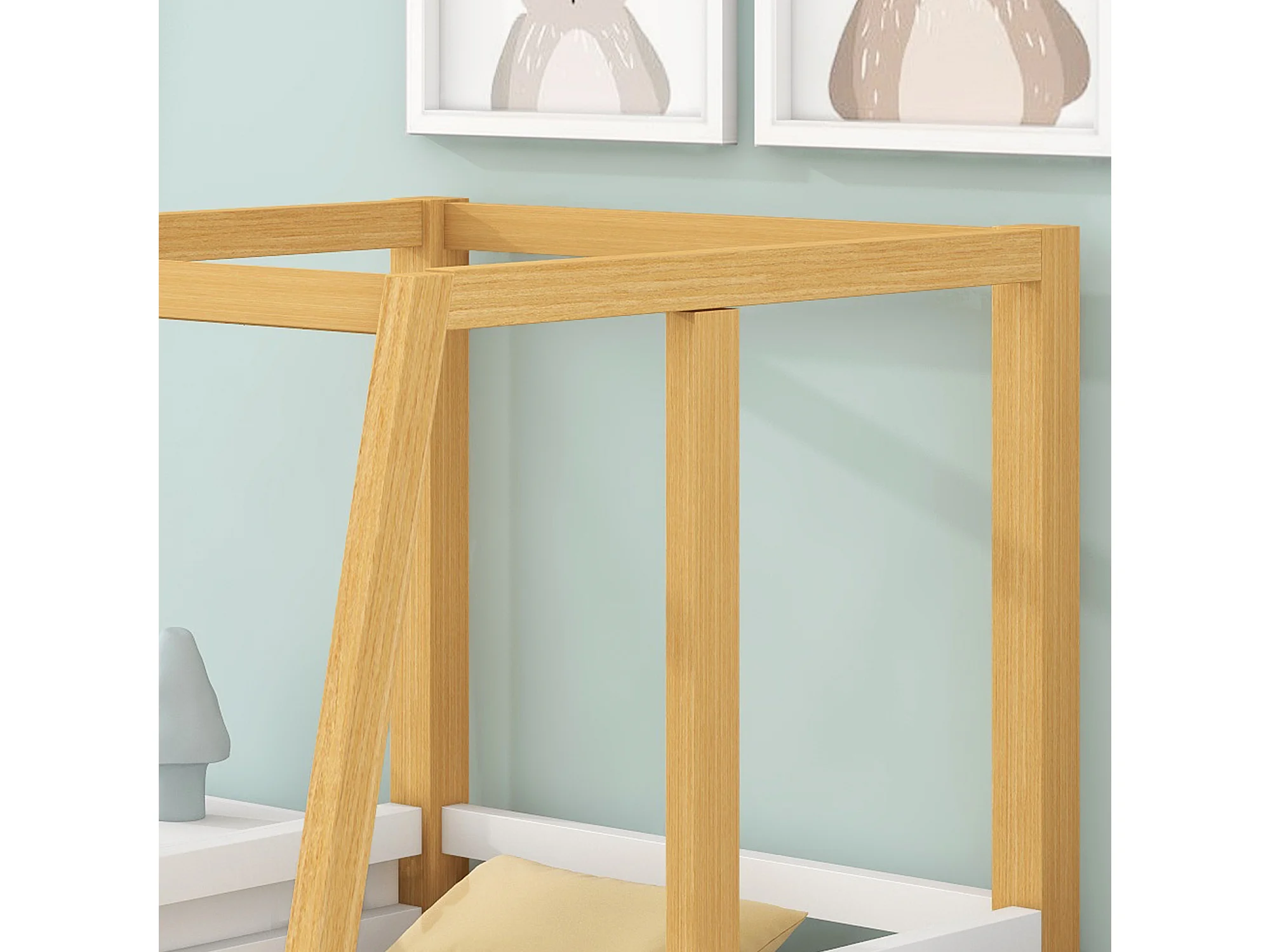 Lit enfant 207.5x95x124 cm avec Bordures latérales et moulures en forme de voiture en blanc pour enfants et adolescents