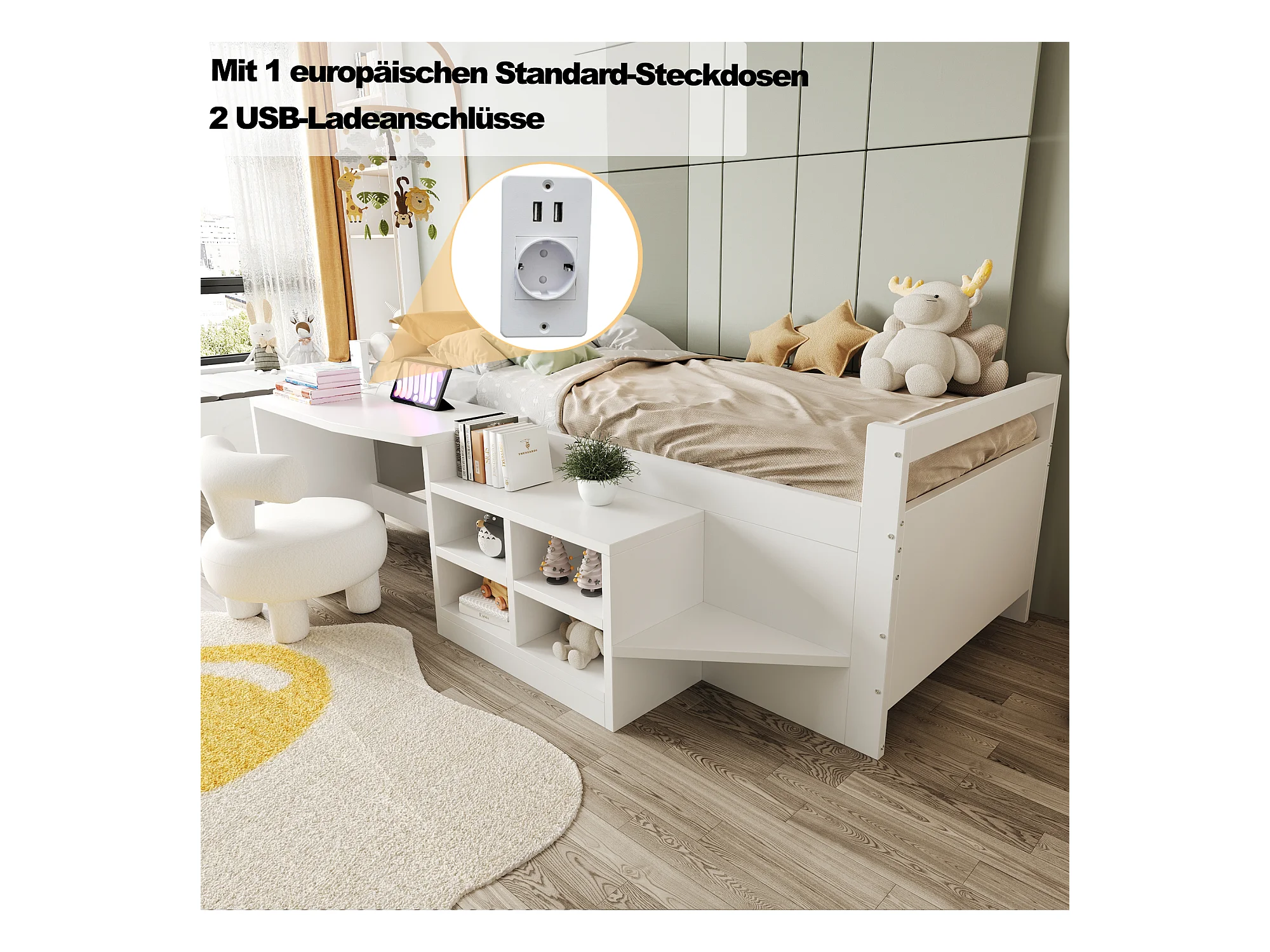Lit enfant - 90 x 200 cm - avec rangements + bureau avec prises - bois - blanc